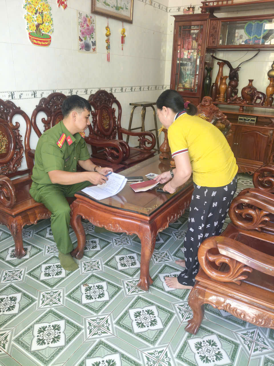 Hình ảnh cán bộ CSKV Công an phường đã đến gặp gỡ gia đình vận động Tam ra đầu thú để hưởng chính sách khoan hồng của pháp luật