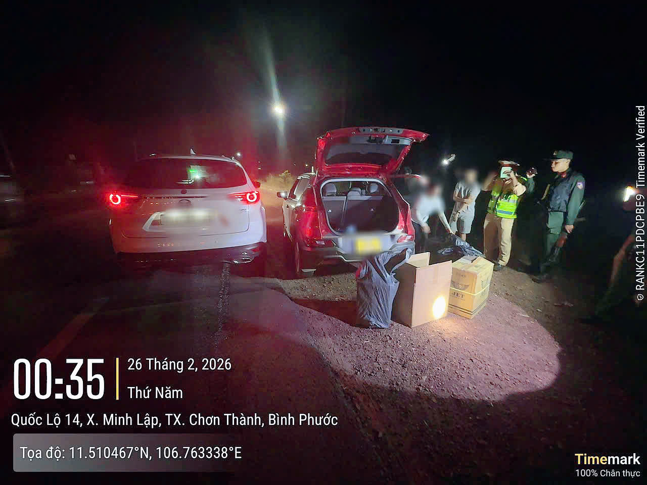 Đến 0 giờ 05 phút ngày 26-2, lực lượng làm nhiệm vụ phát hiện xe nghi vấn lưu thông trên đường Hồ Chí Minh theo hướng từ Tây Ninh đi Đồng Xoài. Tổ công tác nhanh chóng xây dựng phương án dừng xe, phối hợp Công an xã Nha Bích bố trí chốt chặn tại Km979, Quốc lộ 14 (khu vực cầu Nha Bích), đồng thời bám sát di biến động của phương tiện nhằm đảm bảo xử lý an toàn, đúng quy định.