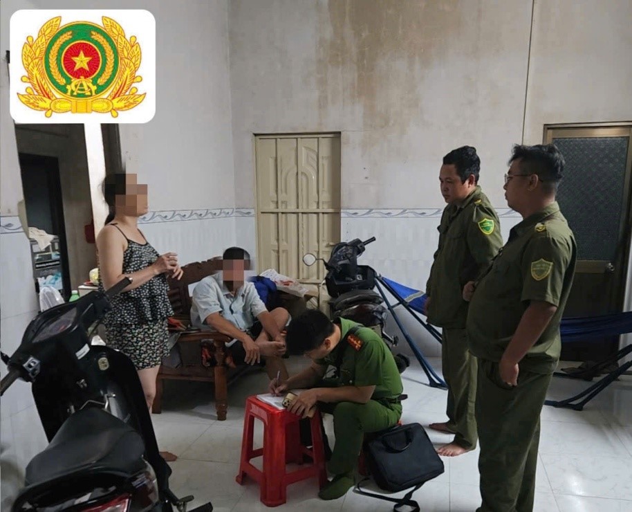 Công an xã Long Thành chủ động đến gia đình đối tượng để tuyên truyền, vận động đối tượng ra đầu thú