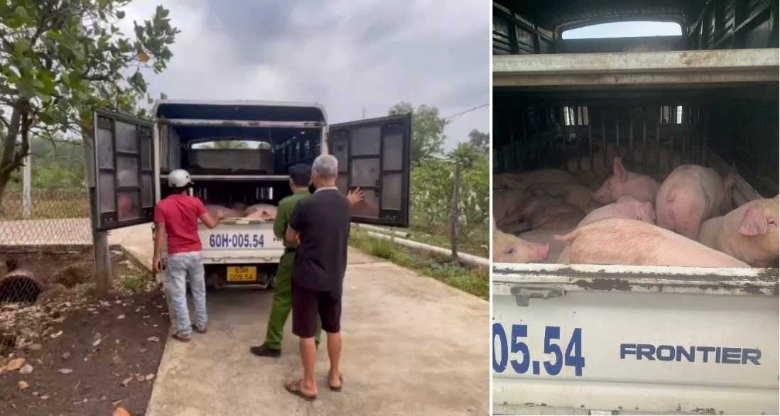 Qua kiểm tra, lực lượng chức năng phát hiện trên xe đang vận chuyển 45 con heo giống, mỗi con khoảng 20kg. Số heo này được vận chuyển từ xã Trảng Bom (tỉnh Đồng Nai), đi qua các địa bàn Tân Uyên, Phú Giáo, Bàu Bàng (tỉnh Bình Dương) và TP Hồ Chí Minh để đưa đến xã Tân Quan (Đồng Nai) tiêu thụ.