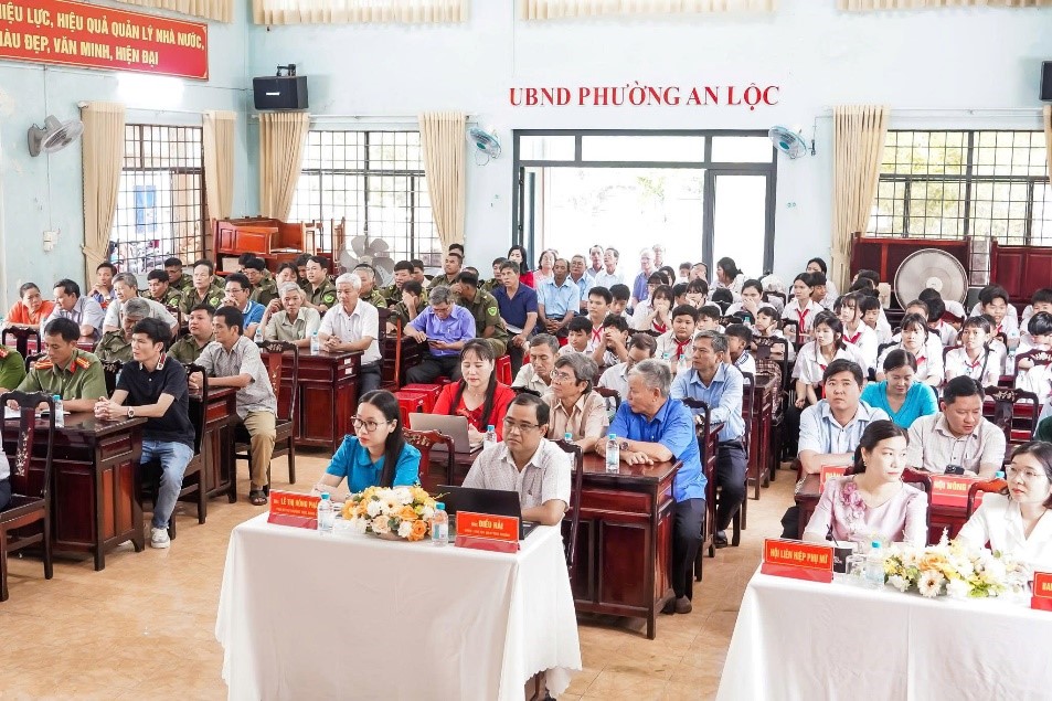 Phát biểu tại buổi lễ, đồng chí Trần Thanh Long - Chủ tịch UBND phường An Lộc chính thức phát động phong trào “Toàn dân tham gia phòng, chống ma túy”, kêu gọi người dân nâng cao tinh thần cảnh giác, tích cực phối hợp với chính quyền trong việc phát hiện, đấu tranh, ngăn chặn các hành vi liên quan đến ma túy. Dịp này, đại diện Công ty TNHH Thanh Trà đã trao tặng nhiều phần quà hỗ trợ học sinh có hoàn cảnh khó khăn trên địa bàn phường.
