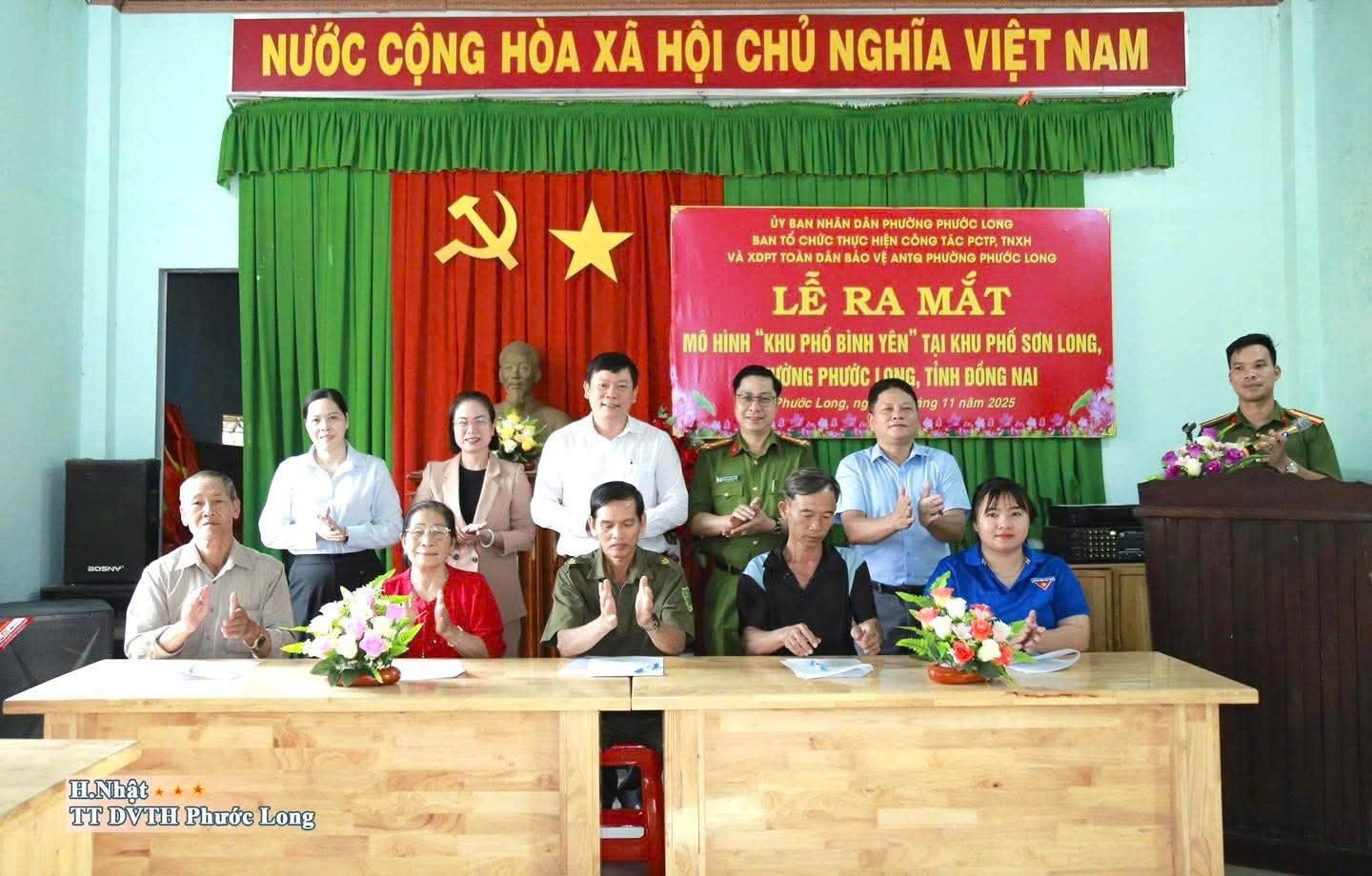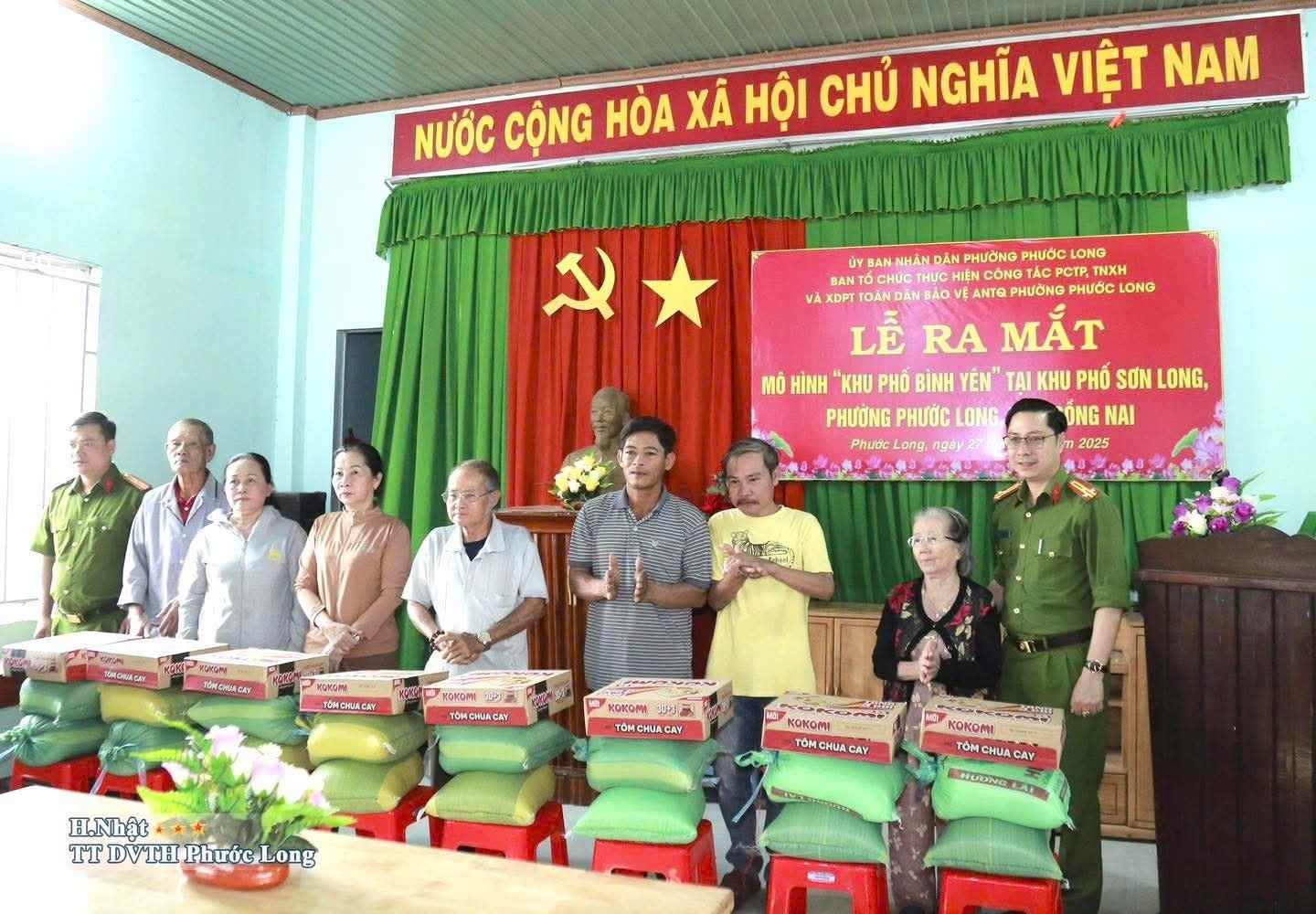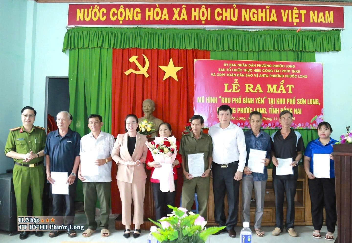 Tại buổi Lễ, lãnh đạo Công an phường Phước Long đã công bố các quyết định về việc thành lập mô hình “Khu phố bình yên” tại khu phố Sơn Long, Ban Chỉ đạo, Ban Tổ chức thực hiện, Tổ giúp việc mô hình, quy chế hoạt động, quy ước phối hợp thực hiện mô hình.