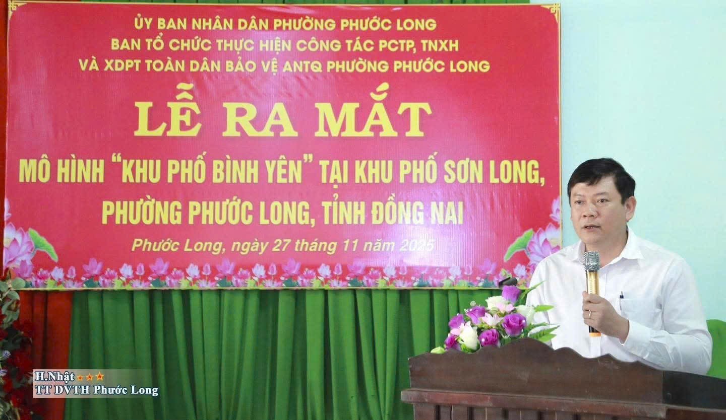 Phát biểu tại Lễ ra mắt, đồng chí Nguyễn Khắc Hạnh, Chủ tịch UBND phường đã chúc mừng mô hình mới được thành lập và ra mắt, thời gian tới sẽ trở thành điểm sáng, lan tỏa và nhân rộng đến các khu phố trong toàn phường. Đồng chí nhấn mạnh, việc xây dựng mô hình “Khu phố bình yên” là một trong những giải pháp trọng tâm nhằm thực hiện có hiệu quả chủ trương xây dựng phường Phước Long đạt chuẩn “an toàn về an ninh trật tự”, mong muốn người dân khu phố Sơn Long tích cực hưởng ứng và tham gia mô hình đạt hiệu quả.