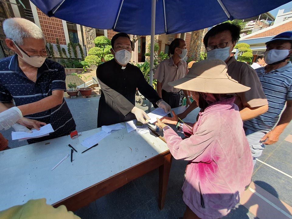 Giáo xứ Kẻ Sặt tặng quà cho những người bán vé số gặp khó khăn do ảnh hưởng của dịch covid -19