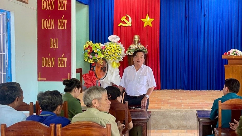 Đồng chí Lê Thăng Long, Bí thư chi bộ khu phố Tân Đồng 4 phát biểu giao nhiệm vụ cho thành viên trong Tổ tự quản về ANTT khu phố.