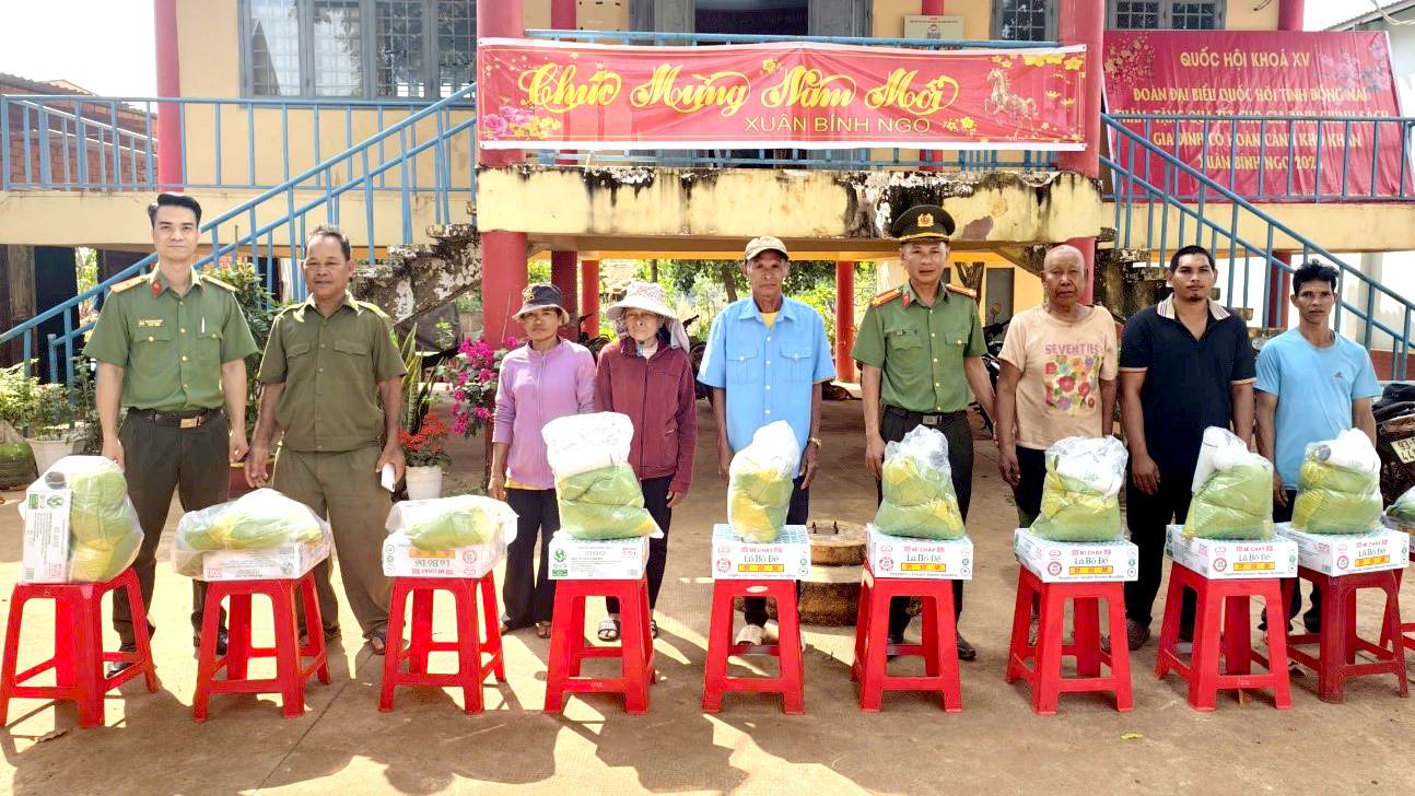 Công an xã tặng quà cho người có uy tín trong đồng bào dân tộc thiểu số.