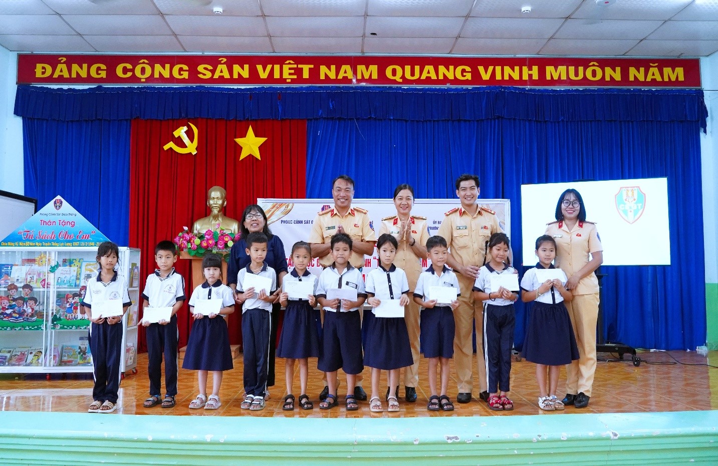 Cùng với đó, Đoàn Thanh niên - Hội Phụ nữ Phòng Cảnh sát giao thông đã trao 20 suất học bổng “Tiếp sức em đến trường”, mỗi suất trị giá 500.000 đồng, cho các em học sinh có hoàn cảnh khó khăn, nỗ lực vươn lên trong học tập tại Trường Tiểu học Nguyễn Bỉnh Khiêm.