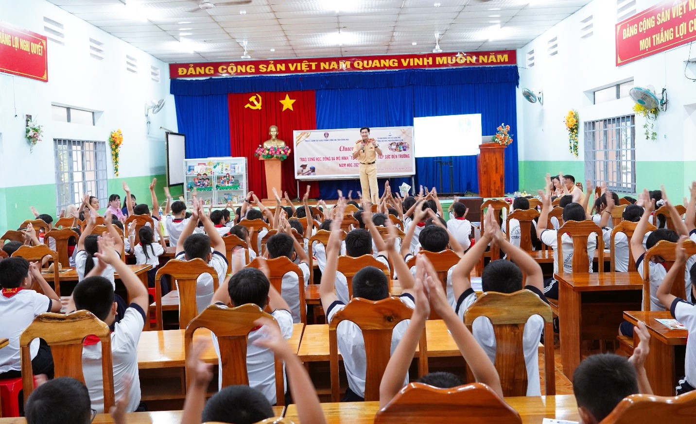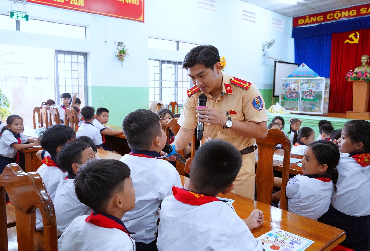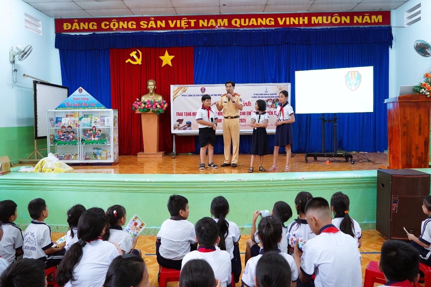 Ngoài hoạt động trao tặng, cán bộ, đoàn viên, hội viên Phòng Cảnh sát giao thông còn tổ chức tuyên truyền kiến thức về an toàn giao thông cho học sinh, phát tờ rơi tuyên truyền an toàn giao thông… nhằm trang bị cho các em những kỹ năng cơ bản khi tham gia giao thông an toàn, hình thành ý thức chấp hành pháp luật ngay từ lứa tuổi nhỏ.