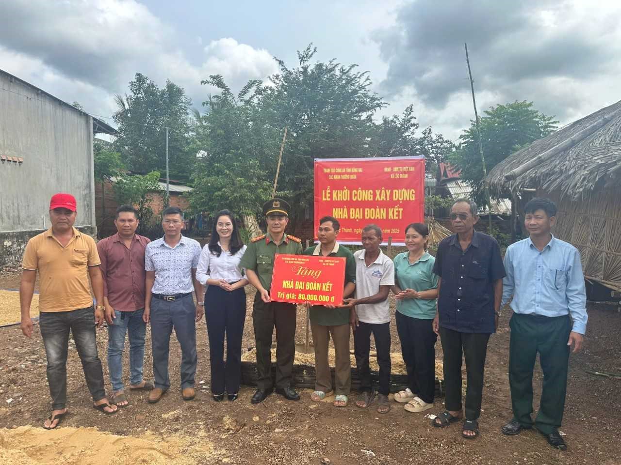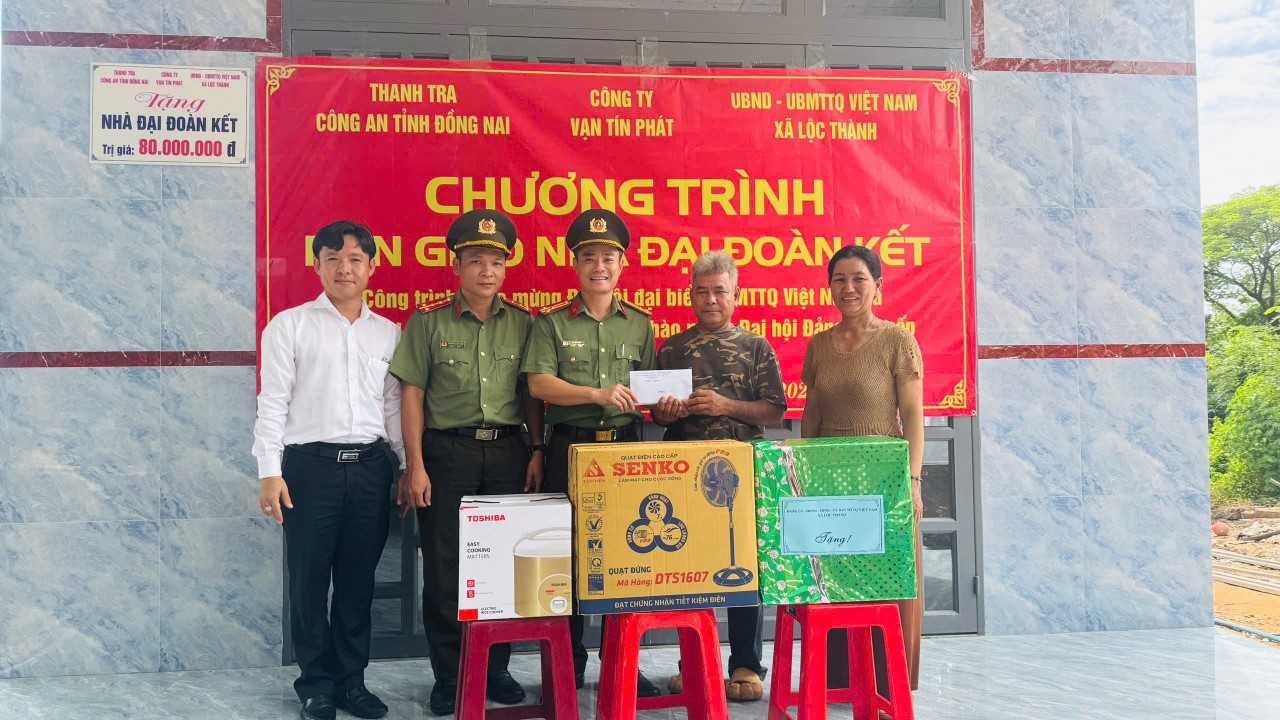 Thanh tra Công an tỉnh đã phối hợp Ủy ban mặt trận Tổ quốc Việt Nam xã Lộc Thành, tỉnh Đồng Nai và Công ty Vạn Tín Phát, hỗ trợ xây dựng 01 căn nhà Đại đoàn kết trị giá 80 triệu đồng, cho hộ gia đình ông Điểu Có, ngụ ở ấp Tà Tê, xã Lộc Thành, tỉnh Đồng Nai, giúp đỡ gia đình ông có nơi ở ổn định, yên tâm lao động, sản xuất.