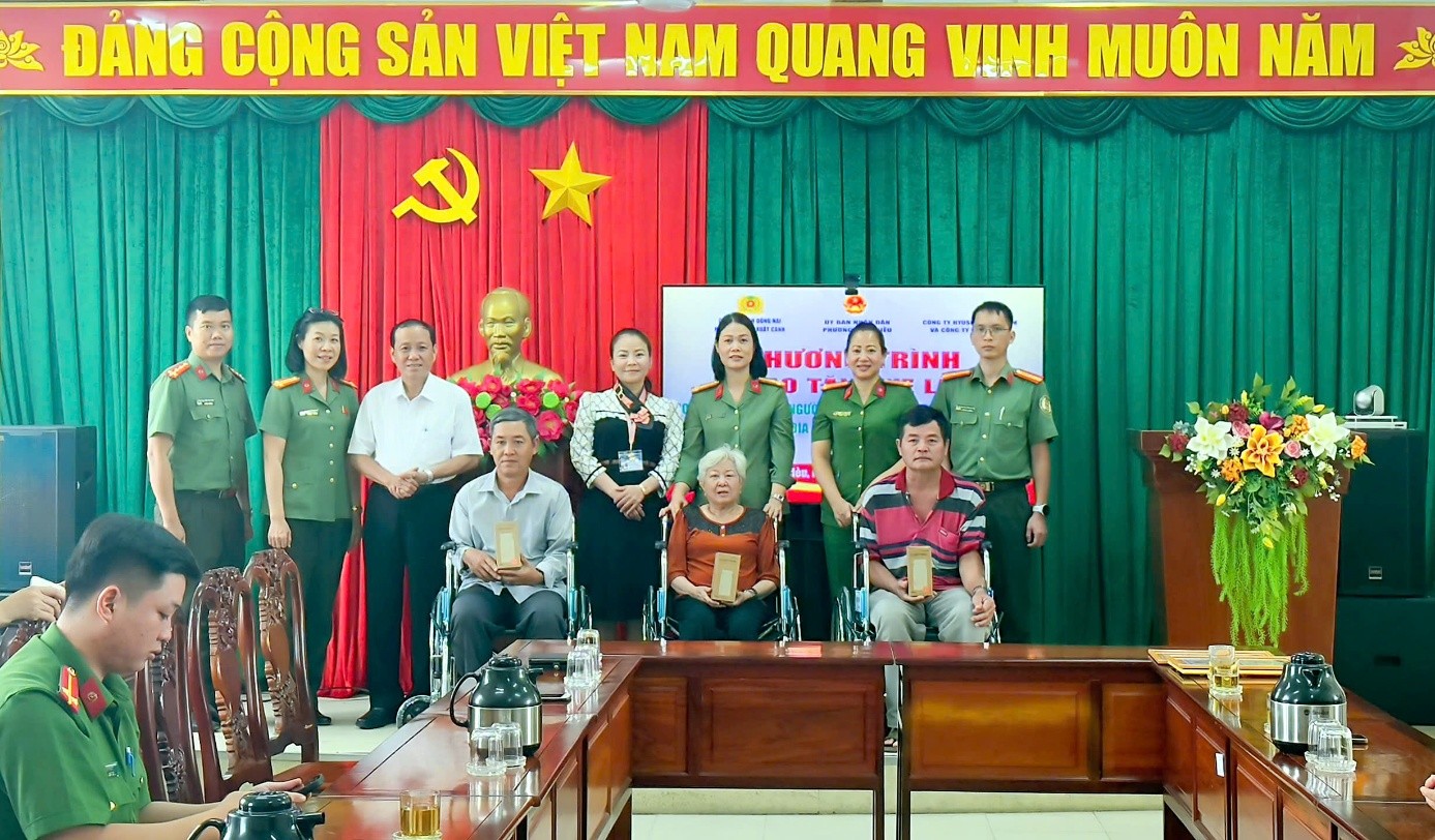 Cùng ngày, tại Phường Tân Triều, Phòng Quản lý Xuất nhập cảnh, Công ty TNHH HYOSUNG VN, Công ty HS HYOSUNG phối hợp UBND phường Tân Triều tổ chức lễ trao trao tặng 20 xe lăn cho thương binh và người khuyết tật có hoàn cảnh khó khăn trên địa bàn phường.