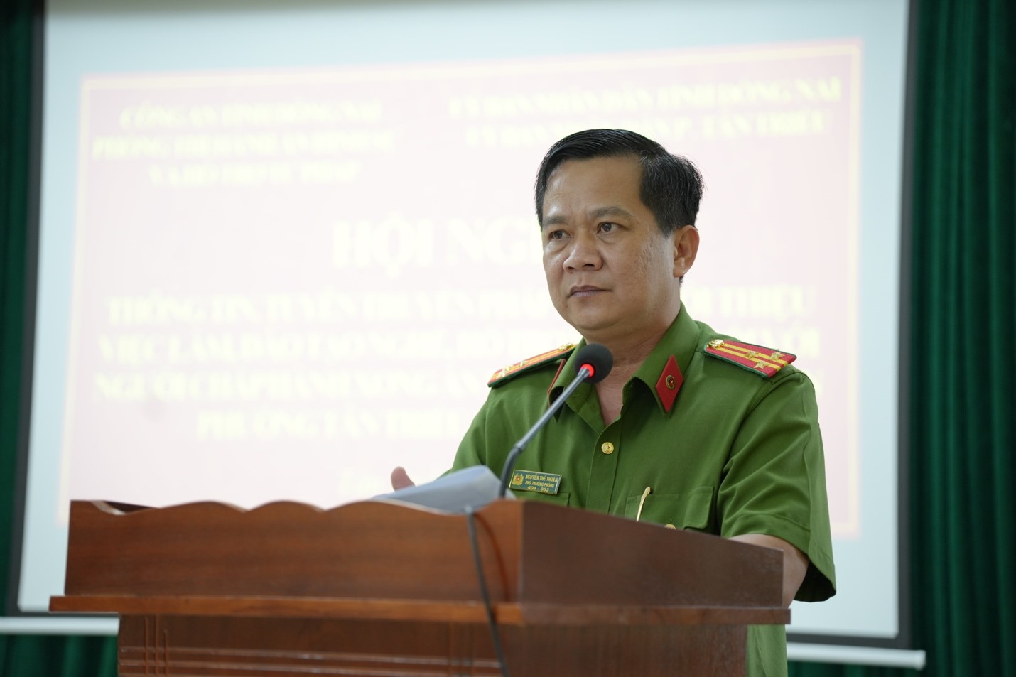 Ngày 3/12, Phòng Cảnh sát Thi hành án hình sự và hỗ trợ tư pháp, Công an tỉnh Đồng Nai đã phối hợp với UBND phường Tân Triều tổ chức Hội nghị thông tin, tuyên truyền pháp luật, giới thiệu việc làm, đào tạo nghề, hỗ trợ vay vốn đối với người người chấp hành xong án phạt tù về cư trú trên địa bàn phường Tân Triều.