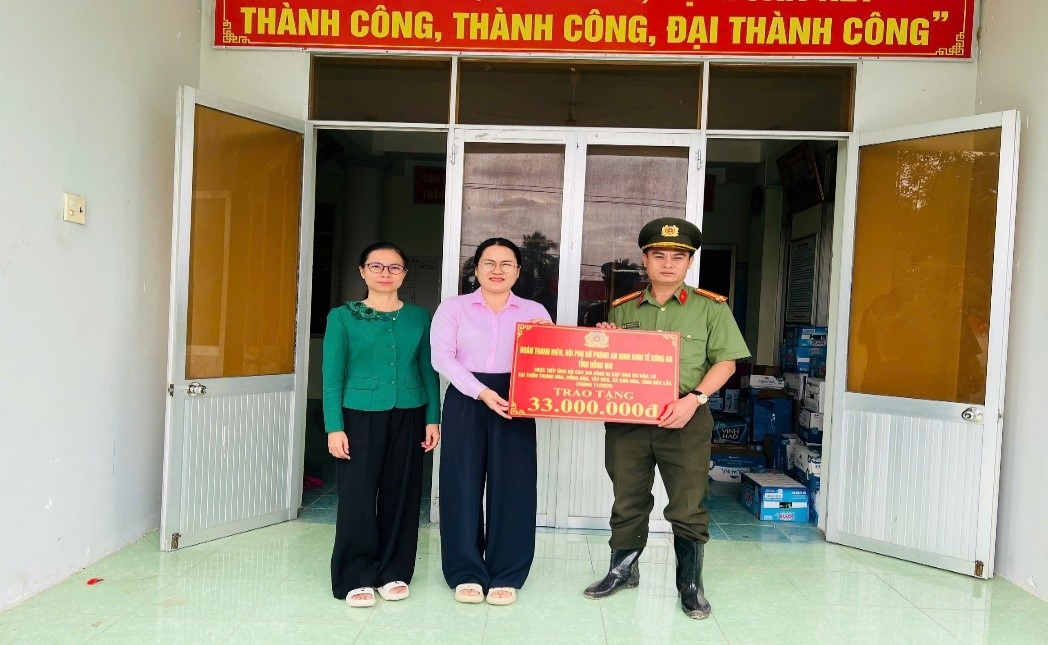 Đặc biệt, phát huy vai trò xung kích của tuổi trẻ và tấm lòng nhân ái của phụ nữ lực lượng vũ trang, Đoàn Thanh niên và Hội Phụ nữ Phòng An ninh kinh tế đã tích cực phát động phong trào quyên góp trong cán bộ, hội viên, đoàn viên và ủng hộ thêm số tiền 33.000.000 đồng, với tổng kinh phí đơn vị hỗ trợ người dân vùng lũ là 63.000.000 đồng.