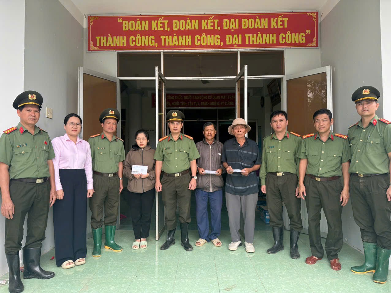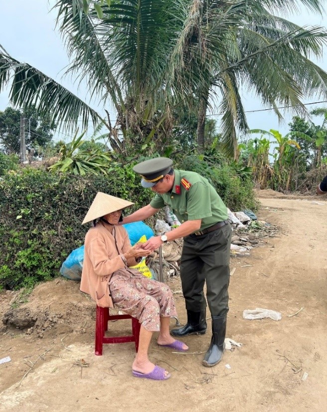 Cùng với đó, Phòng An ninh kinh tế đã tổ chức thăm hỏi và trao tặng số tiền 30.000.000 đồng hỗ trợ bà con bị ảnh hưởng sau thiên tai. Đây là tấm lòng của cán bộ chiến sĩ đơn vị cùng sự đồng hành từ Công ty Cổ phần Gốm Việt Thành (VICERCO) và Phòng khám Đa khoa Tâm Đức, với mong muốn góp phần giúp Nhân dân vùng lũ sớm ổn định cuộc sống.