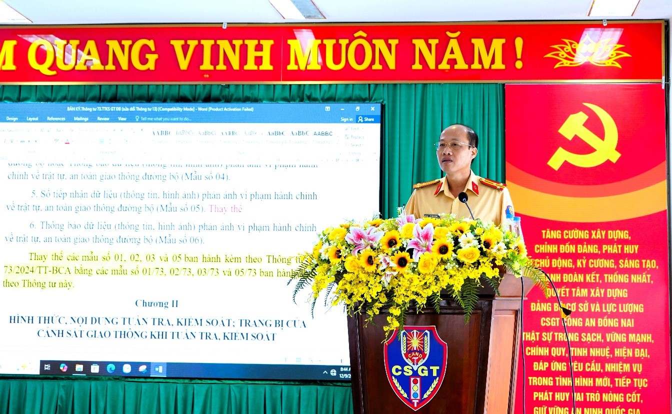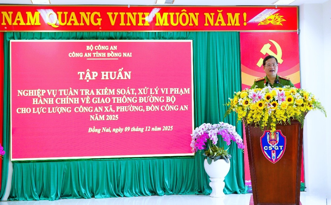 Phát biểu chỉ đạo tại lớp tập huấn, Đại tá Trần Anh Sơn, Phó Giám đốc Công an tỉnh Đồng Nai yêu cầu Phòng Cảnh sát giao thông tiếp tục phát huy vai trò tham mưu, xây dựng nội dung tập huấn sát thực tế; tăng cường trao đổi kinh nghiệm, phân tích các sai sót thường gặp và những tình huống phức tạp trong quá trình tuần tra, xử lý vi phạm. Đồng thời, yêu cầu hướng dẫn cụ thể quy trình nghiệp vụ, sử dụng thiết bị kỹ thuật và công tác hồ sơ. Đại tá Trần Anh Sơn đề nghị sau tập huấn, các đơn vị phải triển khai nghiêm túc, hiệu quả; tăng cường phối hợp giữa CSGT và Công an cấp xã; kịp thời báo cáo, đề xuất tháo gỡ những khó khăn, bảo đảm thực thi pháp luật về trật tự ATGT thống nhất trên toàn tỉnh.
