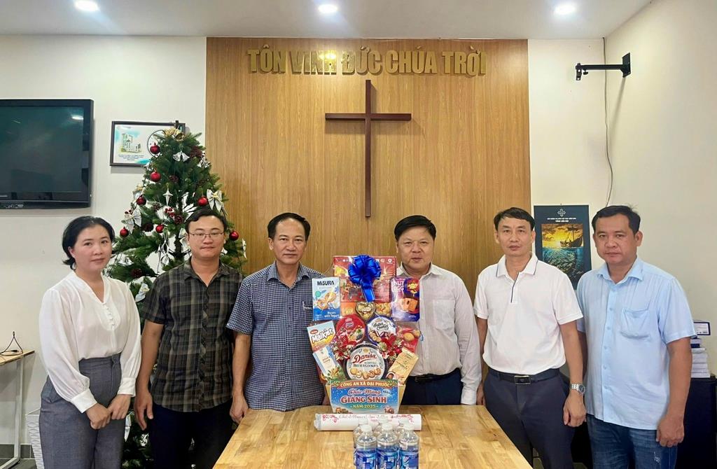 Tại các Giáo xứ, điểm nhóm Tin lành, Công an xã Đại Phước gửi lời chúc mừng tốt đẹp đến các Linh mục, Ban hành giáo cùng bà con giáo dân nhân mùa Giáng sinh; đồng thời trao đổi, nắm tình hình sinh hoạt tôn giáo, công tác phối hợp bảo đảm an ninh trật tự tại cơ sở.