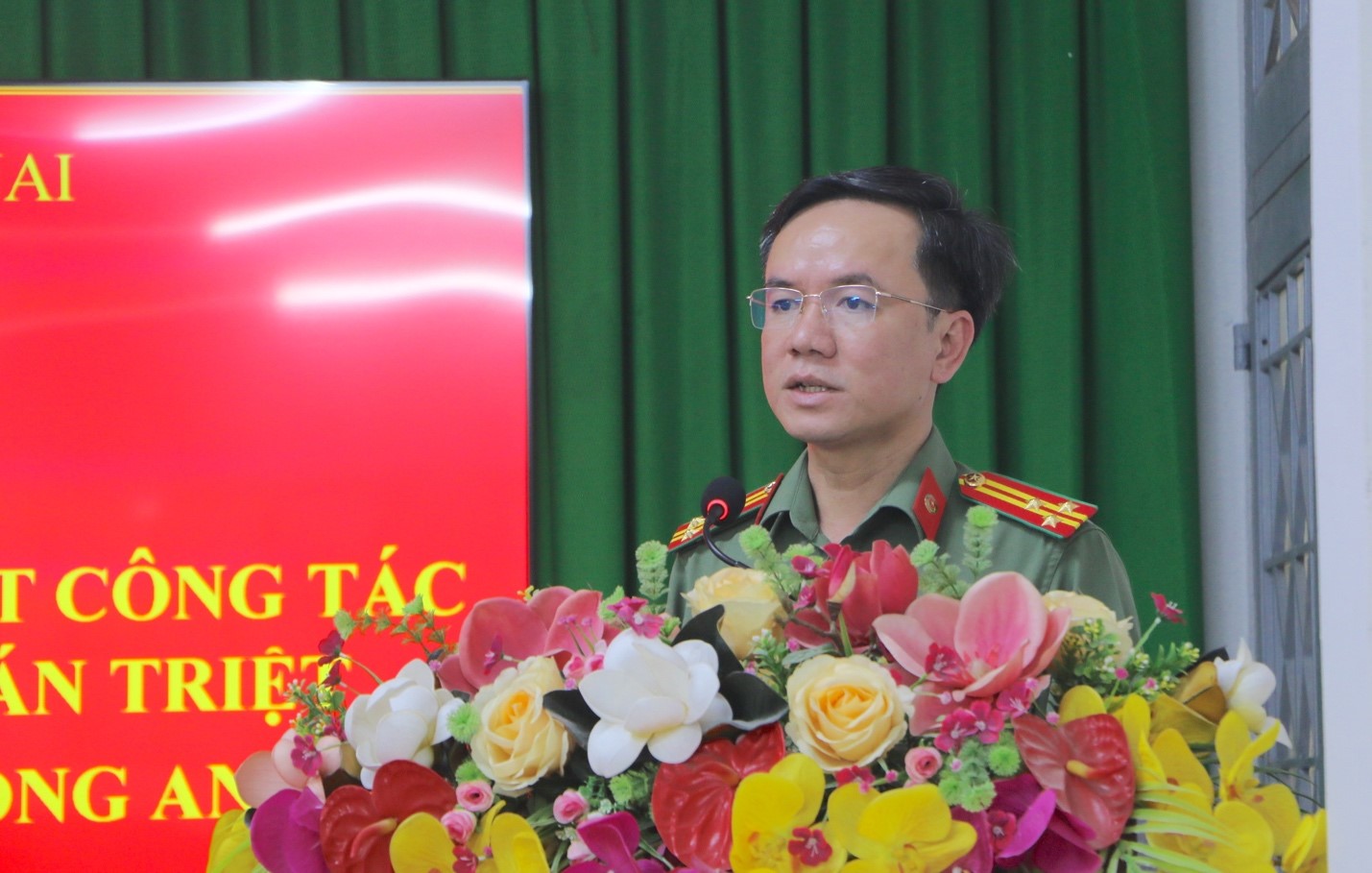 Đại tá Nguyễn Anh Hùng, Phó Giám đốc Công an tỉnh phát biểu chỉ đạo Hội nghị