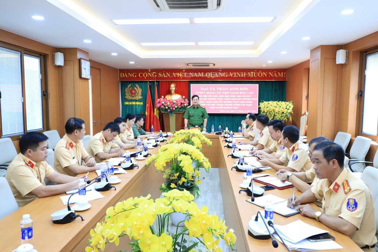 Đồng chí Đại tá Trần Anh Sơn, Phó Giám đốc Công an tỉnh làm việc với lãnh đạo Phòng CSGT, Ban Chỉ huy các Đội, Trạm đường thuỷ