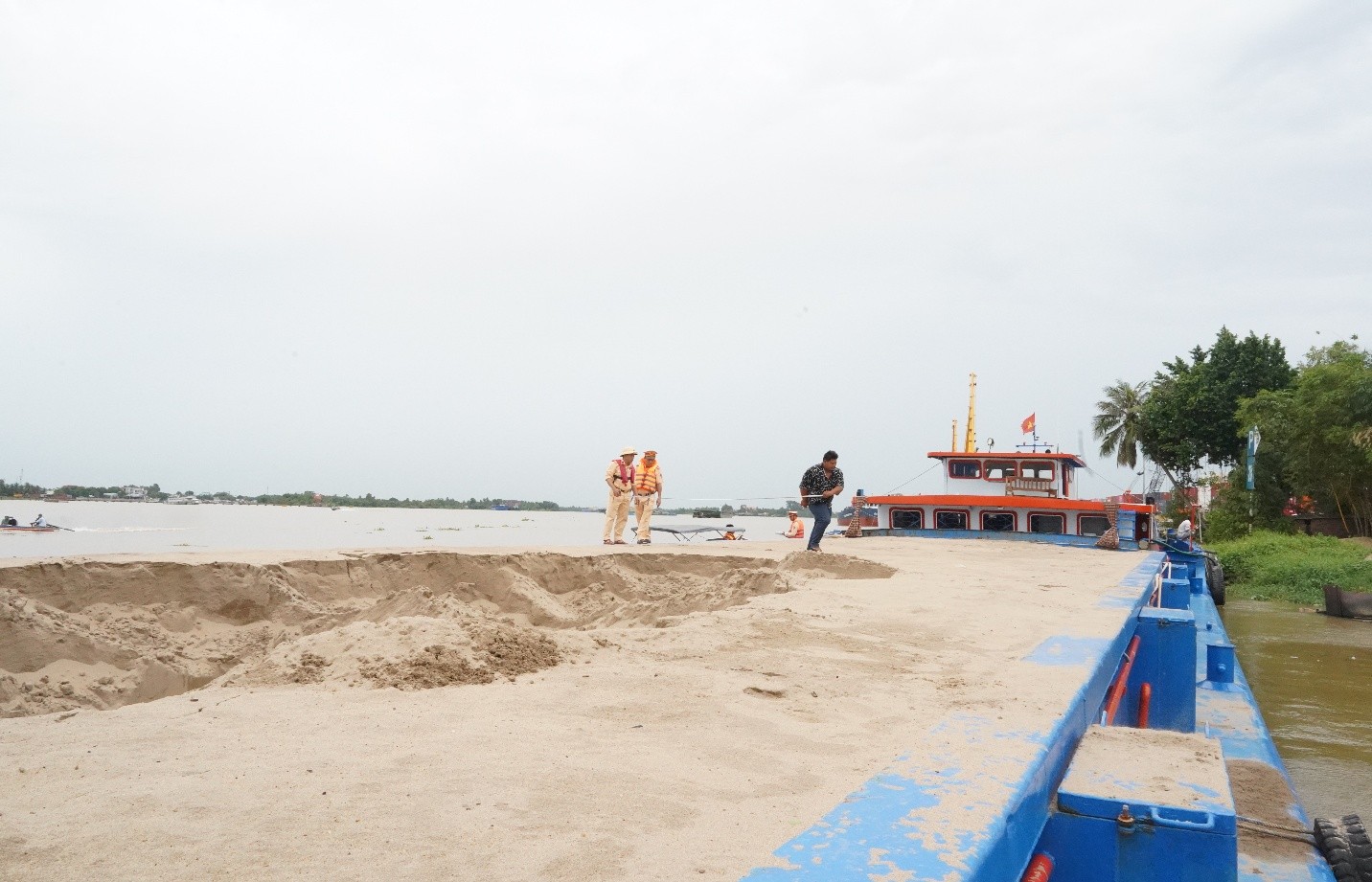 Cảnh sát giao thông đường thuỷ kiểm tra các phương tiện vận tải thuỷ