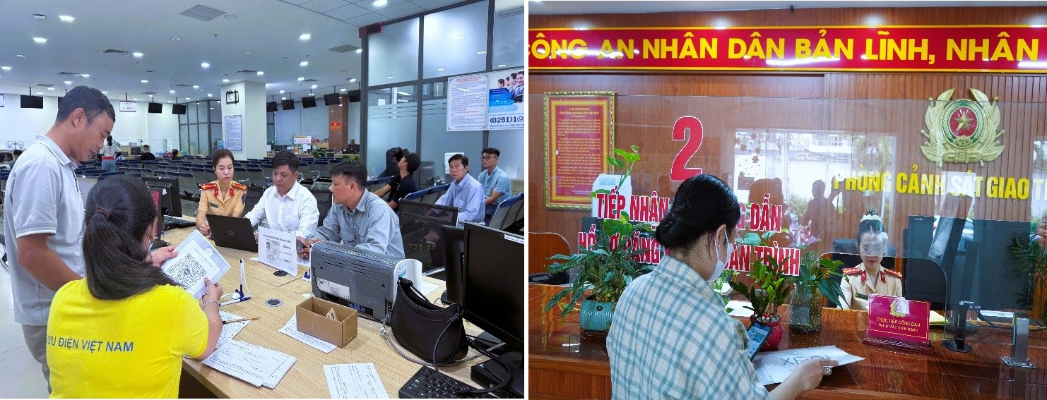 Hướng dẫn người dân làm thủ tục nhận GPLX tại nhà (hình bên trái) và làm các thủ tục đăng ký xe trên dịch vụ công