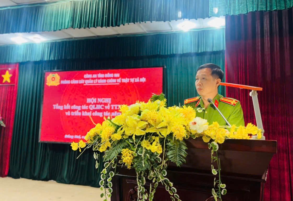 Tuy nhiên, trong bối cảnh tỉnh mới sáp nhập, diện tích rộng, dân số đông, thành phần dân cư phức tạp, tình hình biên chế, tổ chức có nhiều thay đổi, Công an cơ sở còn nhiều khó khăn về quân số, cơ sở vật chất, hạ tầng, do đó việc triển khai nhiệm vụ QLHC về TTXH vẫn còn một số tồn tại hạn chế như: Tình hình vi phạm pháp luật về vũ khí, vật liệu nổ, công cụ hỗ trợ và pháo còn diễn biến phức tạp, công tác vận động, thu hồi VK, VLN chưa đạt hiệu quả triệt để, nhất là đối với vũ khí tự chế trong đồng bào dân tộc thiểu số và vũ khí buôn lậu qua biên giới; công tác quản lý địa bàn, nắm hộ, nắm người của lực lượng CSKV một số địa phương còn lỏng lẻo; công tác nắm tình hình, giải quyết mâu thuẫn nội bộ trong nhân dân còn thiếu chủ động, một số vụ việc nghiêm trọng xuất phát từ nguyên nhân mâu thuẫn từ trước nhưng Công an cơ sở chưa nắm để tham mưu, giải quyết kịp thời, dẫn đến hậu quả nghiêm trọng; công tác quản lý ngành nghề đầu tư kinh doanh có điều kiện về ANTT còn nhiều khó khăn, bất cập. Hội nghị đã thẳng thắn thừa nhận đồng thời đề nghị đại biểu thảo luận, bàn giải pháp, phương án tháo gỡ.
