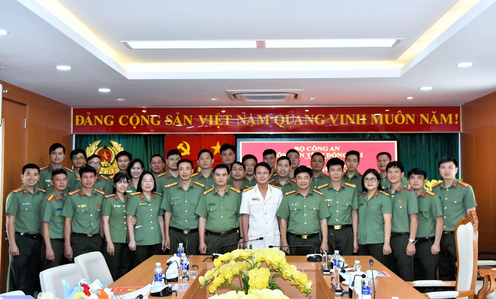 Thượng tá Thái Duy Lương - Trưởng Phòng ANKT chụp hình lưu niệm cùng tập thể CBCS đơn vị