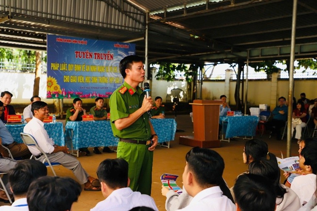 Tại buổi tuyên truyền, các báo cáo viên của lực lượng Công an tỉnh đã truyền đạt nhiều nội dung pháp luật thiết thực, phù hợp với lứa tuổi học sinh. Trọng tâm là các quy định về pháp luật hình sự, phòng chống bạo lực học đường, vũ khí, vật liệu nổ và văn hóa ứng xử trên không gian mạng. Các nội dung được lồng ghép kỹ năng nhận diện, phòng tránh hành vi vi phạm pháp luật, giúp học sinh dễ tiếp thu và ghi nhớ. Qua đó, góp phần nâng cao kiến thức pháp luật, rèn luyện kỹ năng sống an toàn, lành mạnh cho các em, nhất là học sinh vùng đông đồng bào dân tộc thiểu số và vùng biên giới.