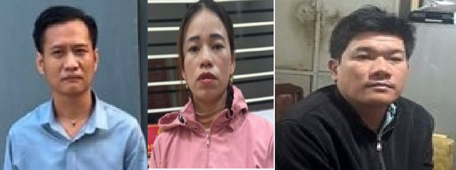 Đối tượng Nguyễn Phú Nhâm, Đỗ Thị Thoa và Phạm Ngọc Tấn Đạt (theo thứ tự từ trái qua phải)
