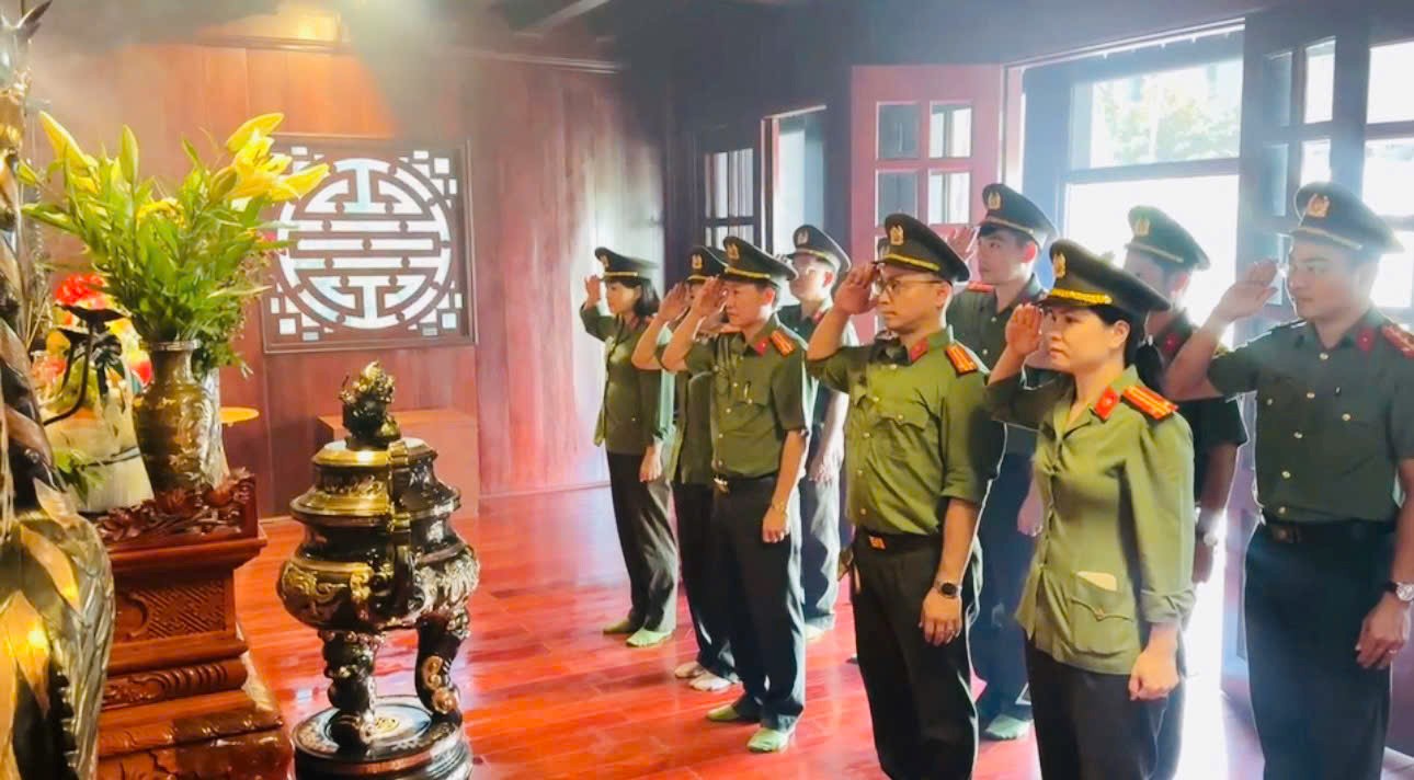 Trong không khí trang nghiêm và thành kính, tập thể Lãnh đạo, CBCS Cơ quan đã dâng hoa, dâng hương, dành phút mặc niệm tri ân, tưởng nhớ công lao to lớn của Chủ tịch Hồ Chí Minh vĩ đại - vị lãnh tụ thiên tài của Đảng, Nhân dân ta; người sáng lập, rèn luyện Đảng Cộng sản Việt Nam và lực lượng Công an nhân dân Việt Nam anh hùng.
