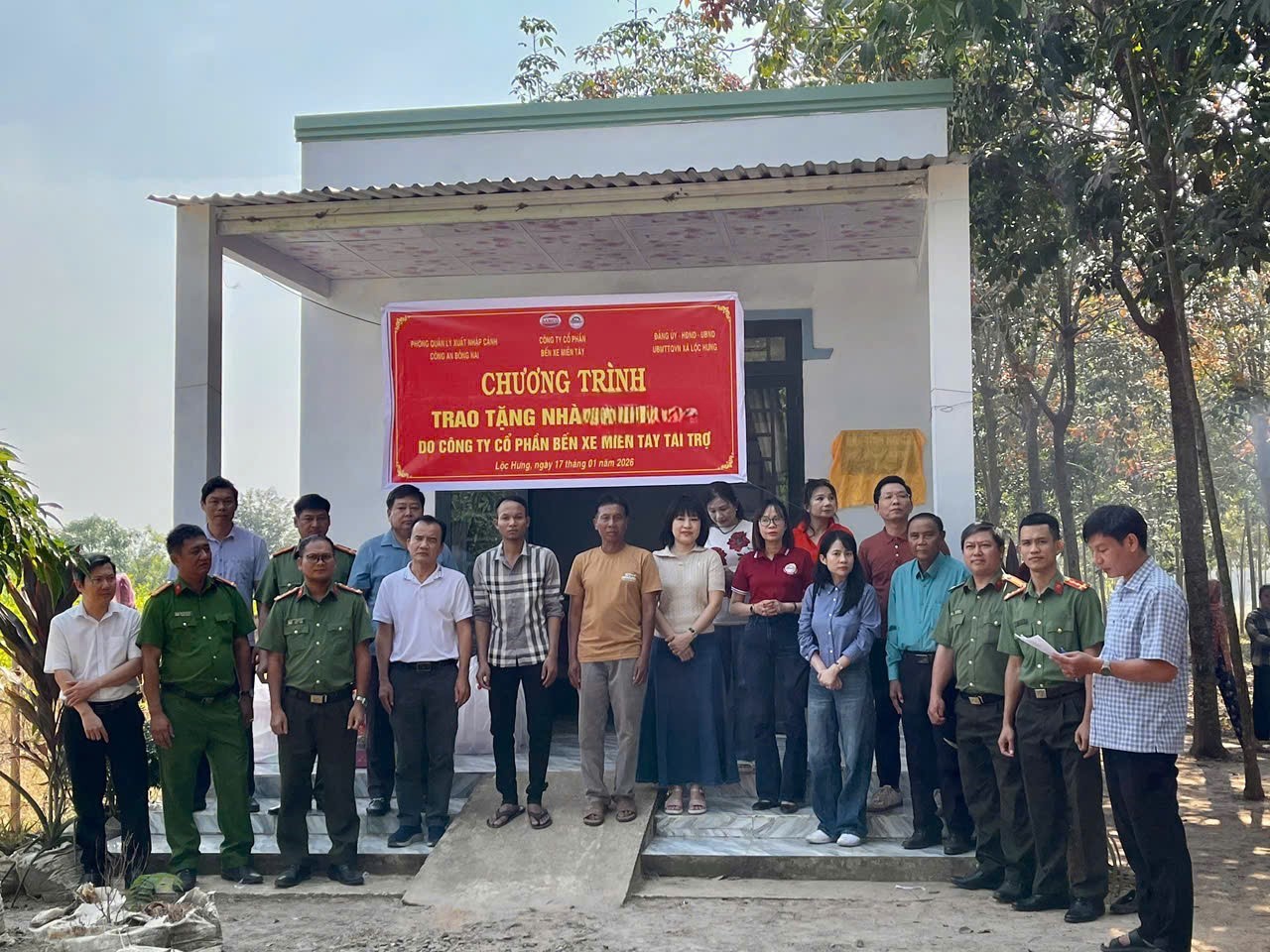 Phòng Quản lý xuất nhập cảnh Công an tỉnh phối hợp Công ty Cổ phần Bến xe Miền Tây và cấp ủy, chính quyền xã Lộc Hưng bàn giao nhà tình thương cho hộ anh Lâm Nang