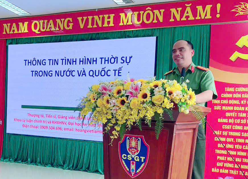Thượng tá, Tiến sĩ Lê Hoàng Việt Lâm truyền đạt các nội dung chuyên đề Thượng tá, Tiến sĩ Lê Hoàng Việt Lâm truyền đạt các nội dung chuyên đề