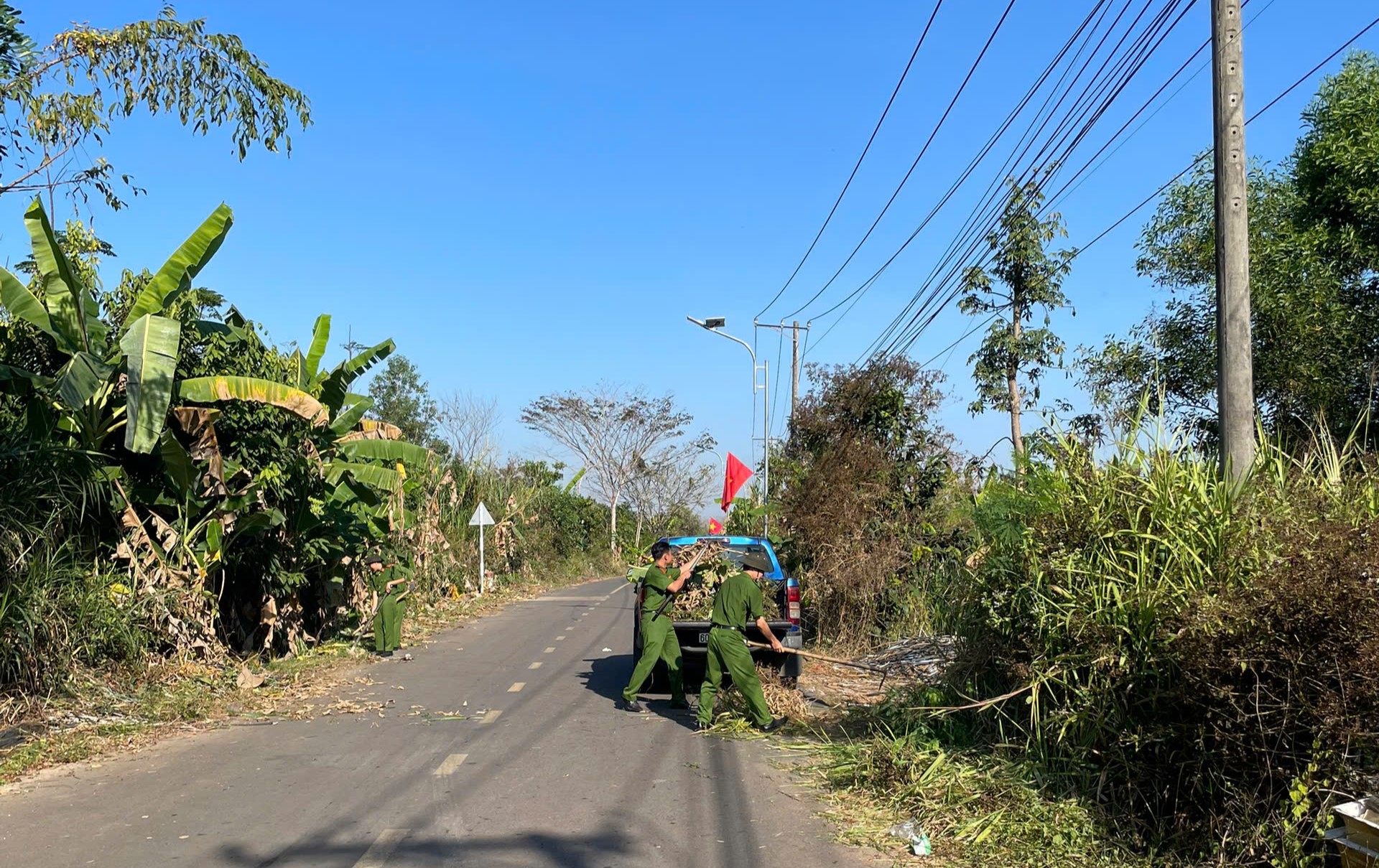 Tổ CSBVMT Cơ sở cai nghiện số 1, Phòng Cảnh sát cơ động Công an tỉnh Đồng Nai dọn dẹp vệ sinh tuyến đường Chà Rang – Xuân Bắc