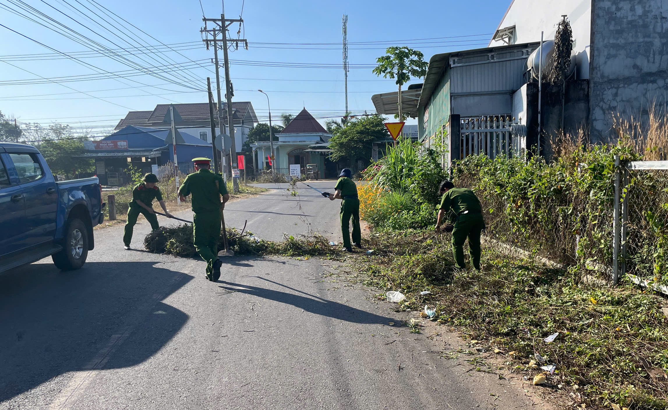 Đoàn viên thanh niên Công an xã Lộc Hưng ra quân vệ sinh môi trường ngày thứ 7 tình nguyện