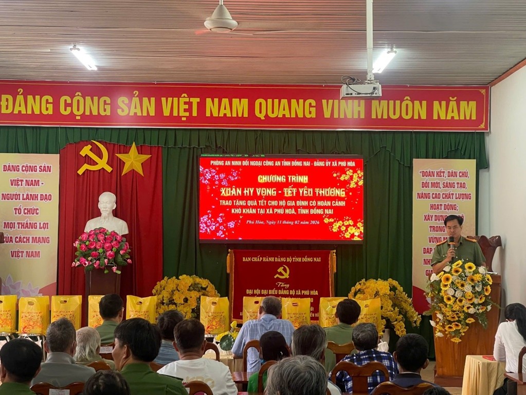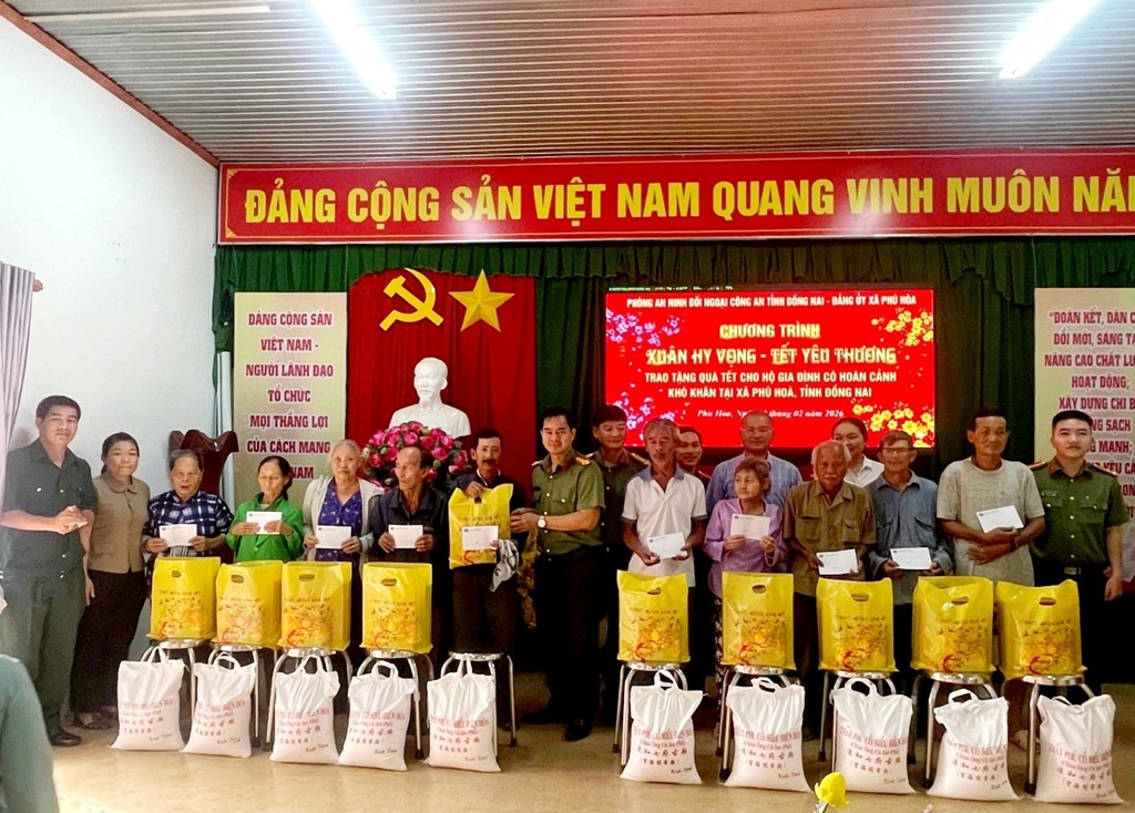Thực hiện Cuộc vận động “Chung tay vì người nghèo”, với tinh thần “Không để ai bị bỏ lại phía sau”, Đoàn công tác do đồng chí Trung tá Trần Minh Tân – Phó Trưởng phòng An ninh Đối ngoại làm Trưởng đoàn đã ân cần thăm hỏi, động viên và trao tặng 60 phần quà thiết yếu, trị giá 36 triệu đồng cho các hộ gia đình có hoàn cảnh khó khăn tại xã Phú Hòa. Mỗi phần quà là tấm lòng của cán bộ, chiến sĩ tự nguyện đóng góp và sự hỗ trợ của các nhà hảo tâm, chứa đựng biết bao tình cảm, sự quan tâm, sẻ chia của cán bộ, chiến sĩ của Phòng An ninh Đối ngoại nói riêng và toàn lực lượng Công an tỉnh Đồng Nai nói chung, góp phần giúp bà con đón một cái Tết đầm ấm, hạnh phúc.