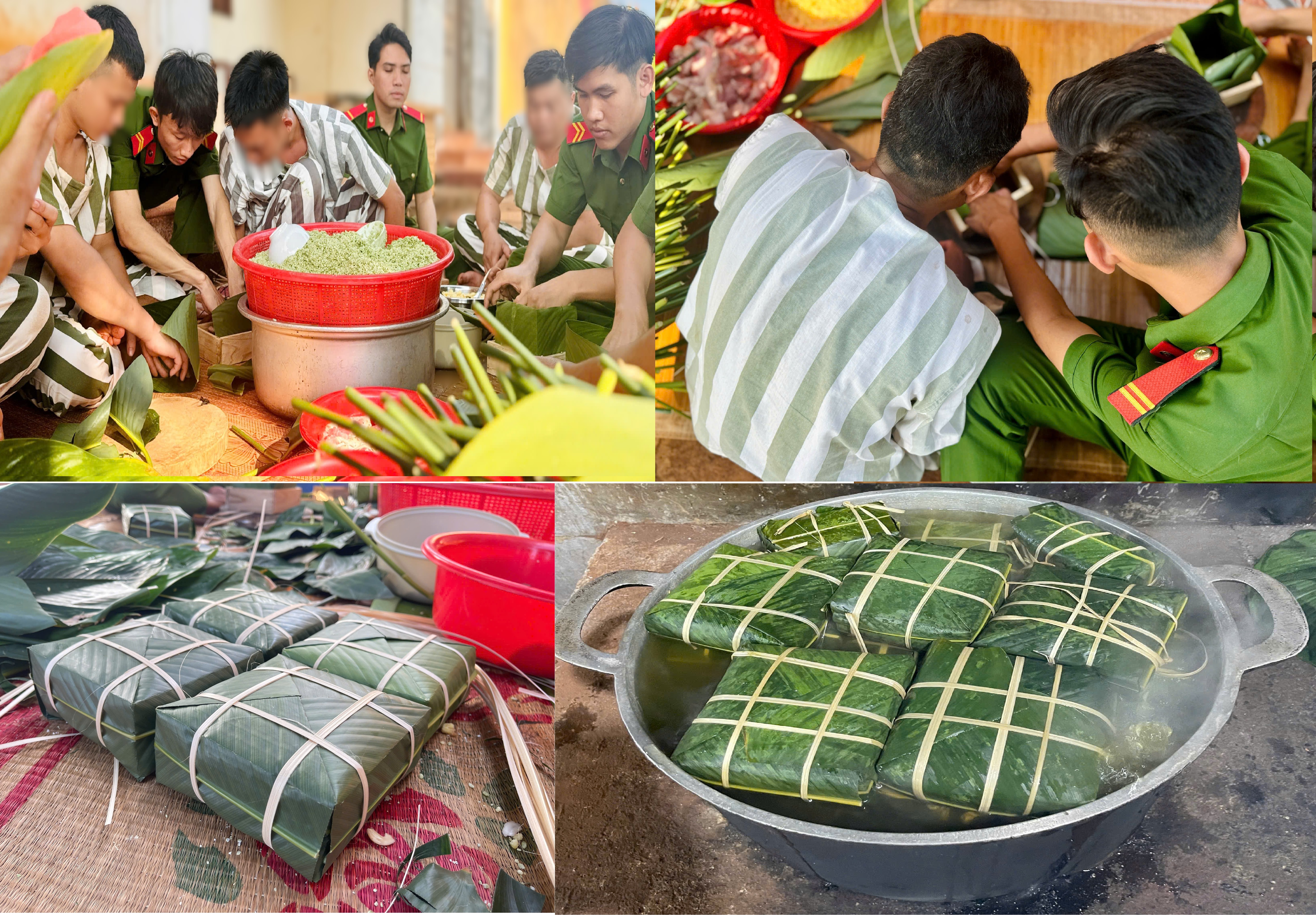Phạm nhân Phân trại tạm giam Phước Long gói bánh chưng đón Xuân