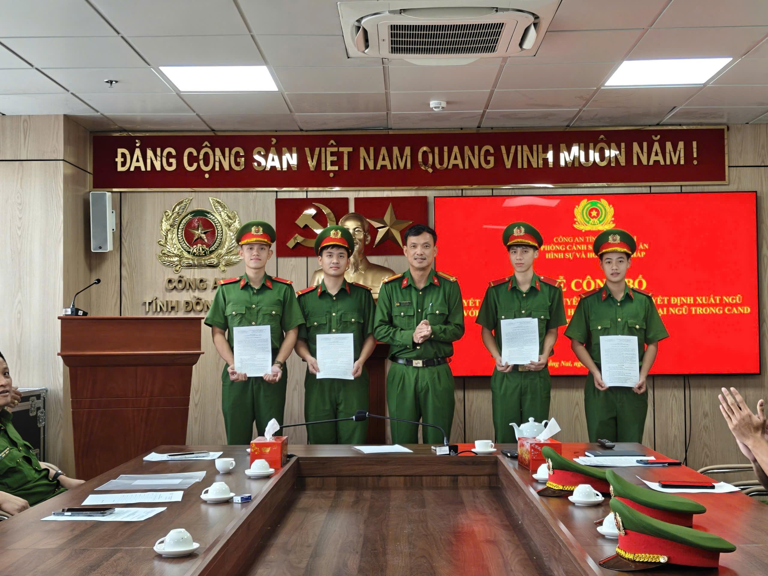 Cũng trong dịp này, Phòng Cảnh sát thi hành án hình sự và hỗ trợ tư pháp đã công bố và trao quyết định chuyển sang chế độ chuyên nghiệp đối với đồng chí Trần Minh Quân và đồng chí Nguyễn Tấn Dũng. Đây là sự ghi nhận xứng đáng đối với quá trình rèn luyện, phấn đấu, tinh thần trách nhiệm và năng lực công tác của hai đồng chí trong thời gian qua; đồng thời thể hiện sự quan tâm của Đảng ủy, lãnh đạo đơn vị trong công tác xây dựng lực lượng, tạo nguồn cán bộ cho Công an nhân dân.