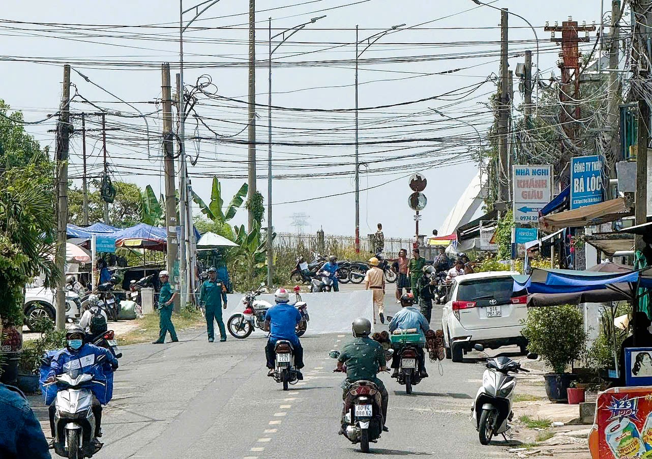 Lực lượng CSGT phối hợp cùng lực lượng chức năng chốt chặn, điều tiết giao thông tại khu vực Cầu Ghềnh