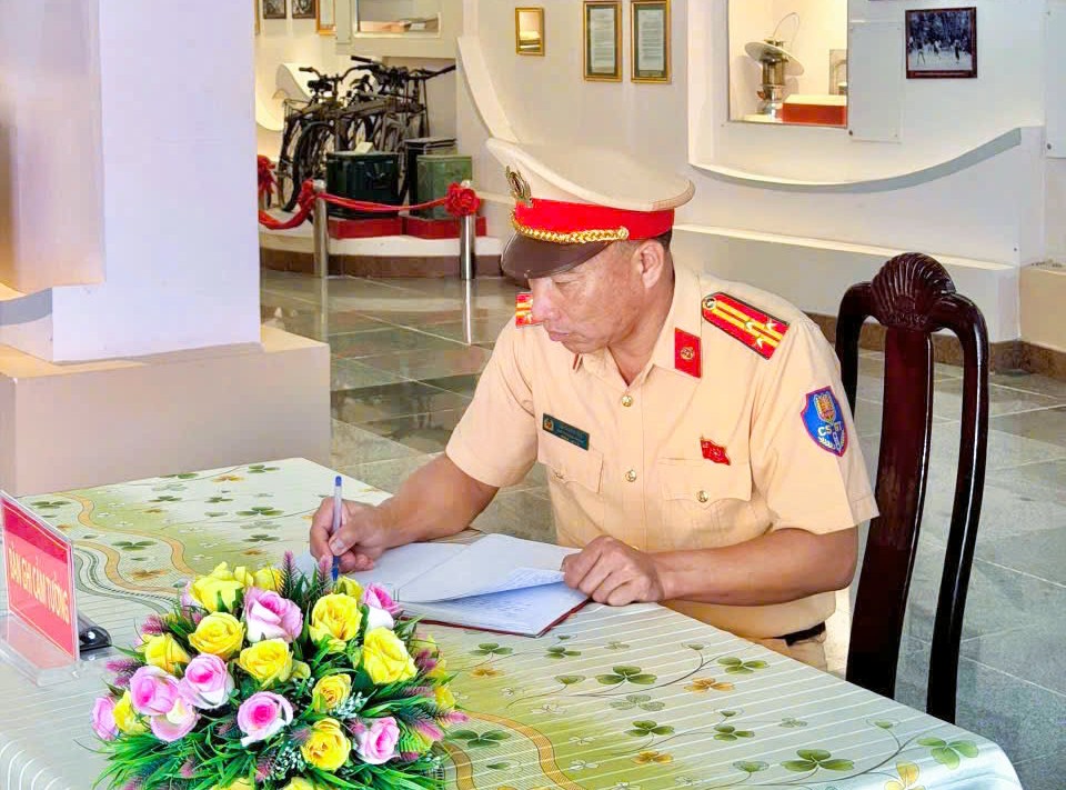 Thượng tá Lữ Thanh Trà, Phó trưởng Phòng CSGT Công an tỉnh Đồng Nai đại diện đơn vị ghi cảm tưởng tại Nhà thờ Chủ tịch Hồ Chí Minh