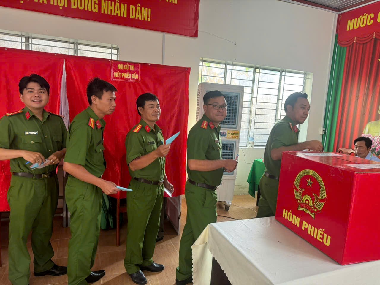 Gương mẫu trong thực hiện quyền công dân, không chỉ là những người bảo vệ an ninh trật tự, mỗi chiến sĩ Công an KCN Long Thành còn là một cử tri gương mẫu. Với tinh thần "Sáng suốt lựa chọn người có đức, có tài", các đồng chí đã chủ động nghiên cứu tiểu sử ứng cử viên, sẵn sàng thực hiện quyền và nghĩa vụ công dân ngay từ những giờ đầu của ngày hội lớn.