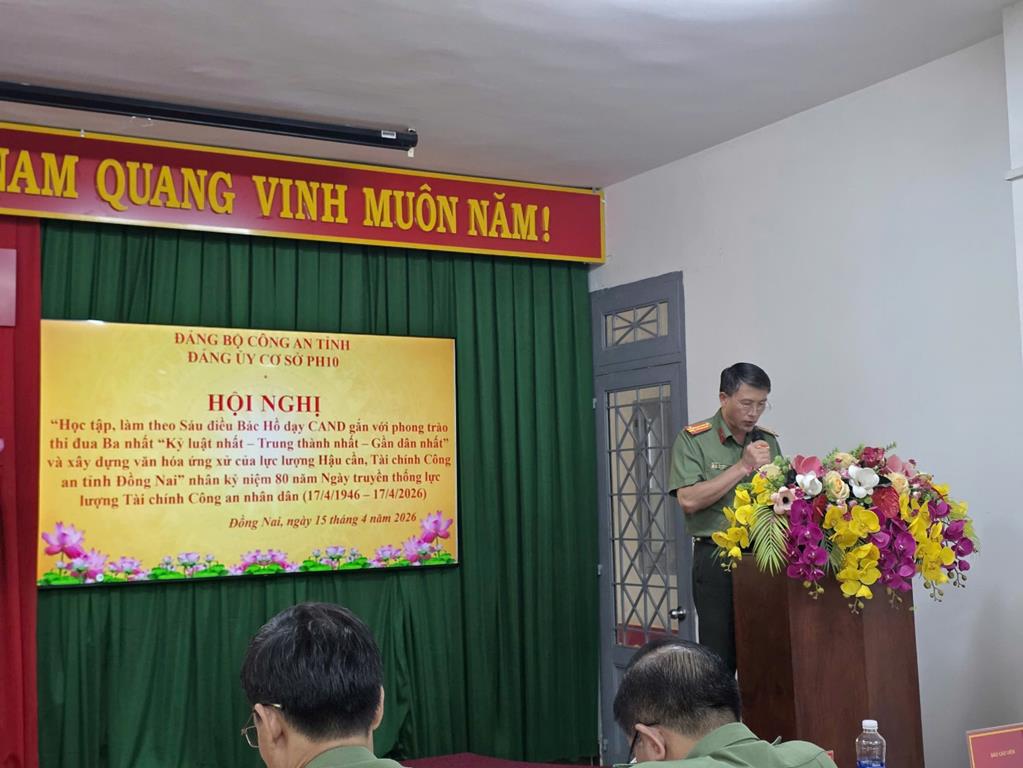 Hội nghị được tổ chức nhân dịp kỷ niệm 80 năm Ngày truyền thống lực lượng Tài chính Công an nhân dân (17/4/1946 – 17/4/2026). Tham dự hội nghị có tập thể Cấp ủy Ban Lãnh đạo Phòng Hậu cần Công an tỉnh và 100% đảng viên, cán bộ chiến sĩ đơn vị. Đồng chí Thượng tá Nguyễn Văn Hải – Phó Bí thư Đảng ủy, Phó trưởng Phòng Hậu cần Công an tỉnh chủ trì Hội nghị. Báo cáo viên Hội nghị là đồng chí Tiến sĩ Lê Hoàng Việt Lâm – Giảng viên Trường Đại học An ninh nhân dân.