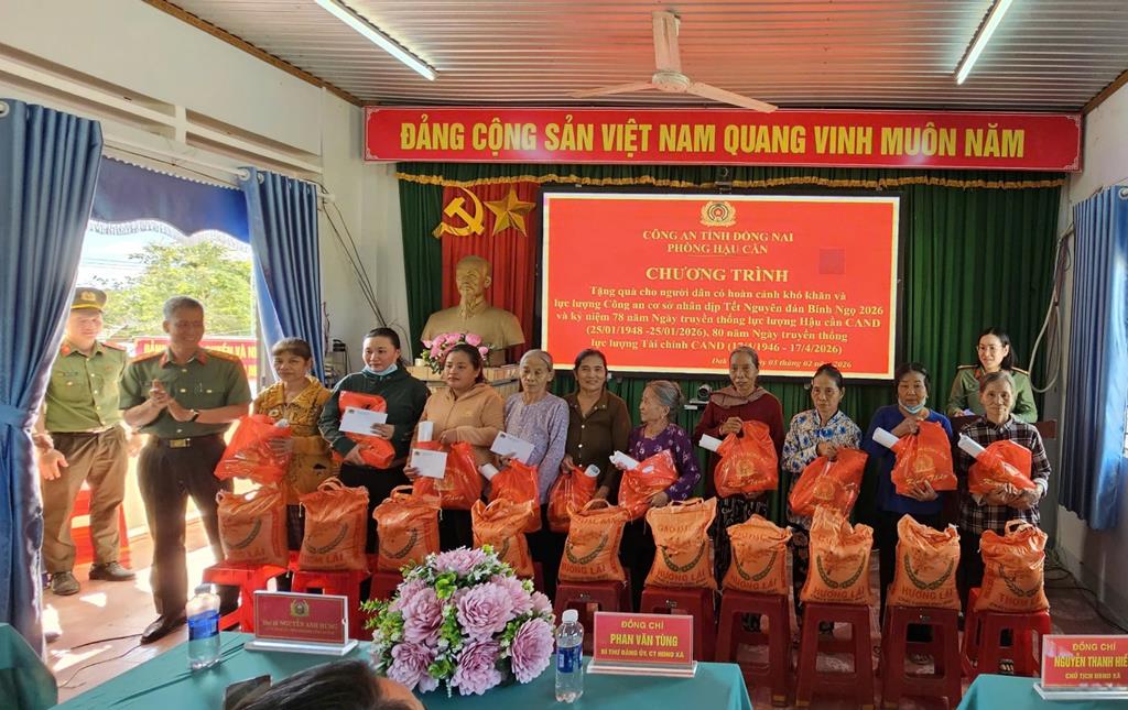 Đại tá Nguyễn Anh Hùng – Phó Giám đốc Công an tỉnh cùng đoàn công tác của Phòng Hậu cần Công an tỉnh tổ chức trao tặng quà cho người dân có hoàn cảnh khó khăn tại xã Daklua nhân dịp Tết nguyên đán 2026