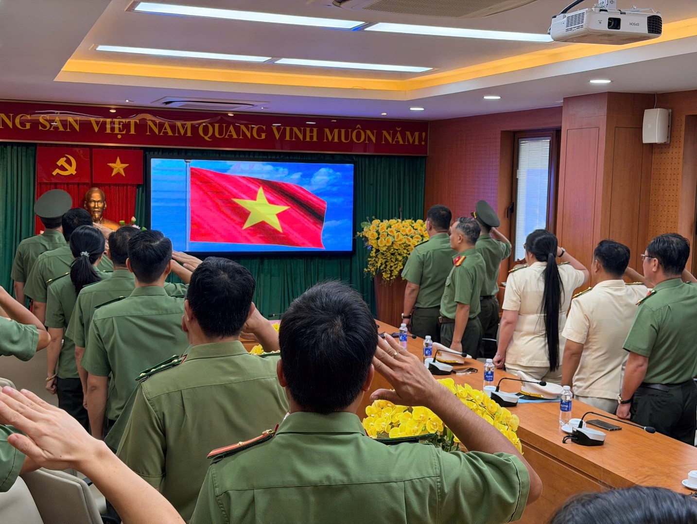 Cán bộ, chiến sĩ thực hiện nghi lễ chào cờ