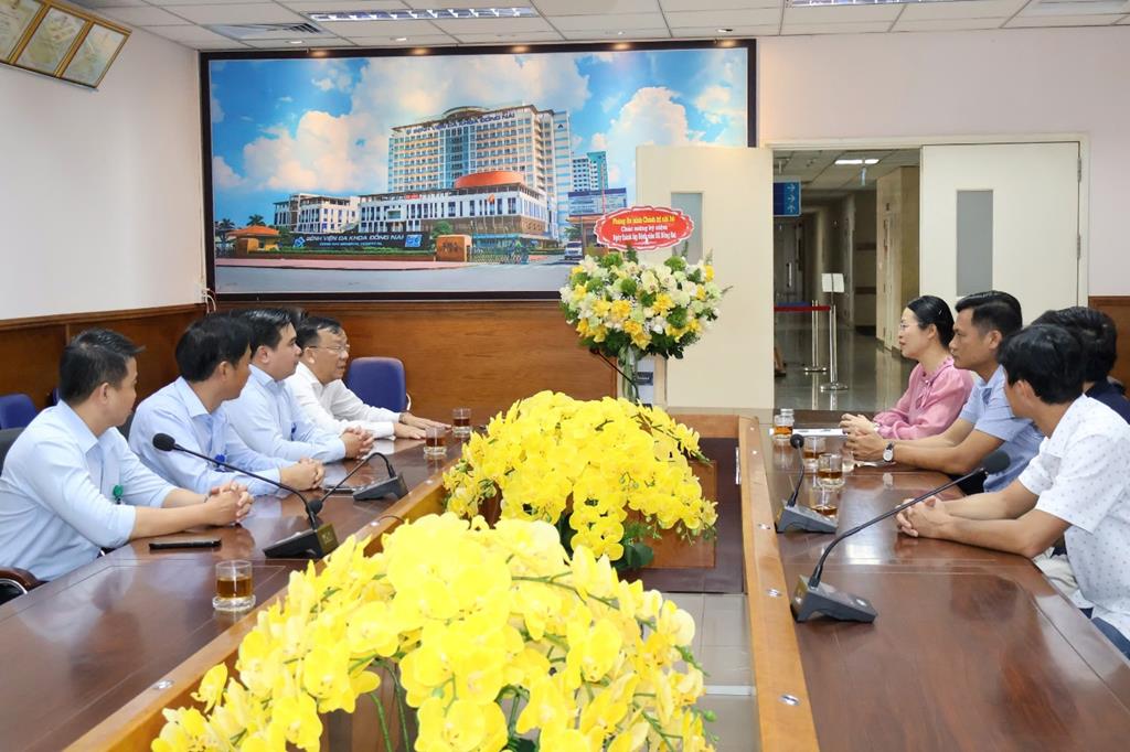Đồng chí Thượng tá Phạm Hồng Chính - Trưởng phòng An ninh Chính trị nội bộ cùng CBCS đơn vị đến thăm và chúc mừng Bệnh viện Đa khoa Đồng Nai
