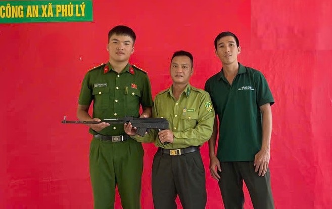 Công an xã Phú Lý tiếp nhận 1 khẩu súng tự chế do cán bộ Kiểm lâm giao nộp