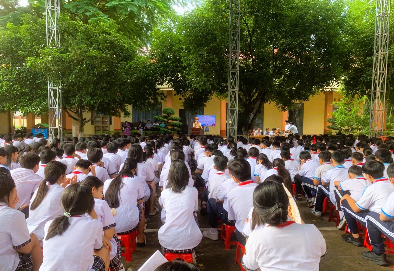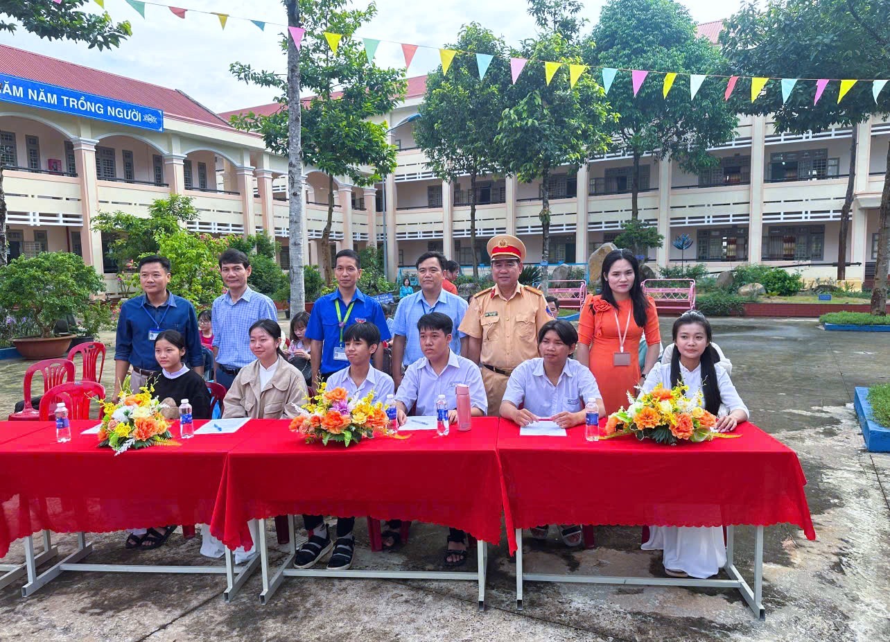 Trạm CSGT Suối Tre tuyên truyền an toàn giao thông cho học sinh và giáo viên Trường THCS Lê A