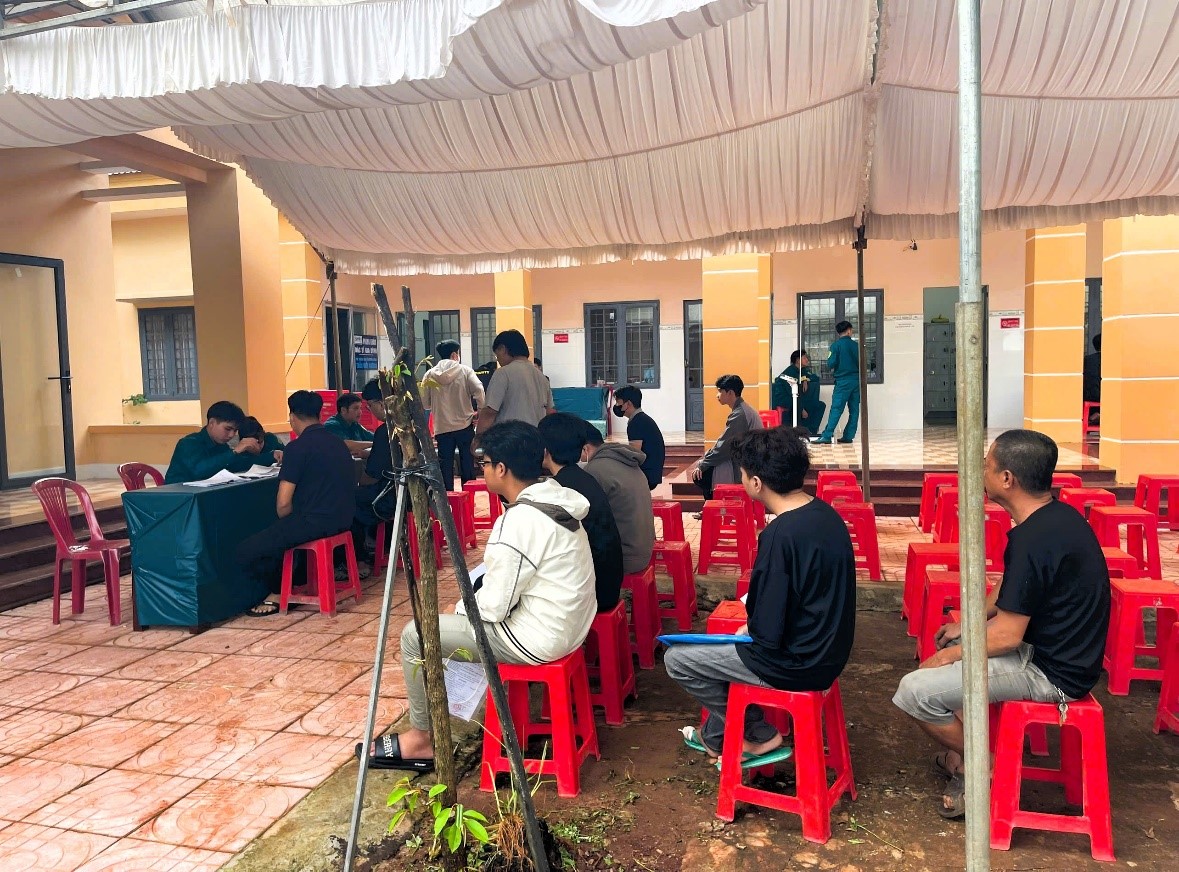 Quang cảnh buổi khám sơ tuyển công dân thực hiện nghĩa vụ quân sự tại Trạm y tế xã Lộc Tấn