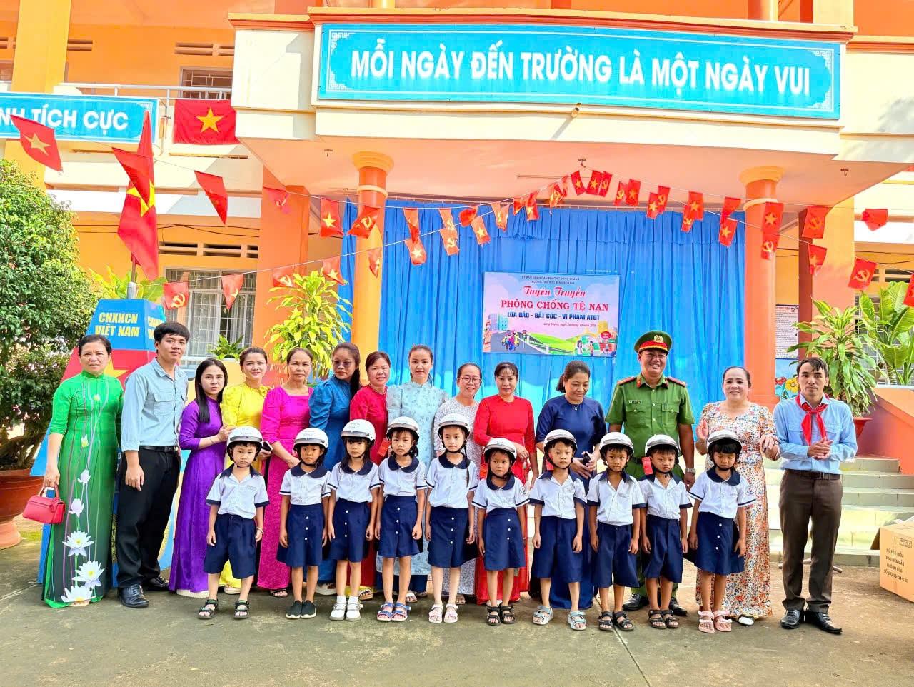 Bên cạnh đó, Công an phường đã tuyên truyền về những nội dung cơ bản của Luật Giao thông đường bộ; nhấn mạnh các hành vi vi phạm thường gặp khi tham gia giao thông đường bộ như: không đội mũ bảo hiểm, dàn hàng 2, hàng 3, lạng lách đánh võng, chở quá số người quy định,... Cũng trong buổi tuyên truyền, cán bộ Công an phường kết hợp nhà trường tổ chức đưa ra các câu hỏi phù hợp với lứa tuổi học sinh về kiến thức về pháp luật giúp các em dễ hiểu, dễ nhớ và tiếp thu kiến thức được tốt hơn đồng thời có một số phần quà cho các em học sinh. Từ đó đưa ra giải pháp nâng cao ý thức chấp hành pháp luật, các nội quy, quy định của nhà trường, địa phương nơi cư trú đối với các em học sinh.