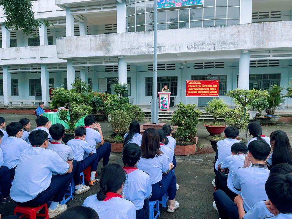 Tại buổi tuyên truyền, cán bộ Công an xã Đại Phước đã giới thiệu những kiến thức cơ bản giúp học sinh nhận biết các loại ma túy, thuốc lá điện tử, thuốc lá nung nóng và các chất kích thích thường gặp hiện nay; đồng thời phân tích những hậu quả, tác hại nghiêm trọng của việc sử dụng các chất này đối với sức khỏe, tinh thần, hành vi và tương lai của mỗi người.