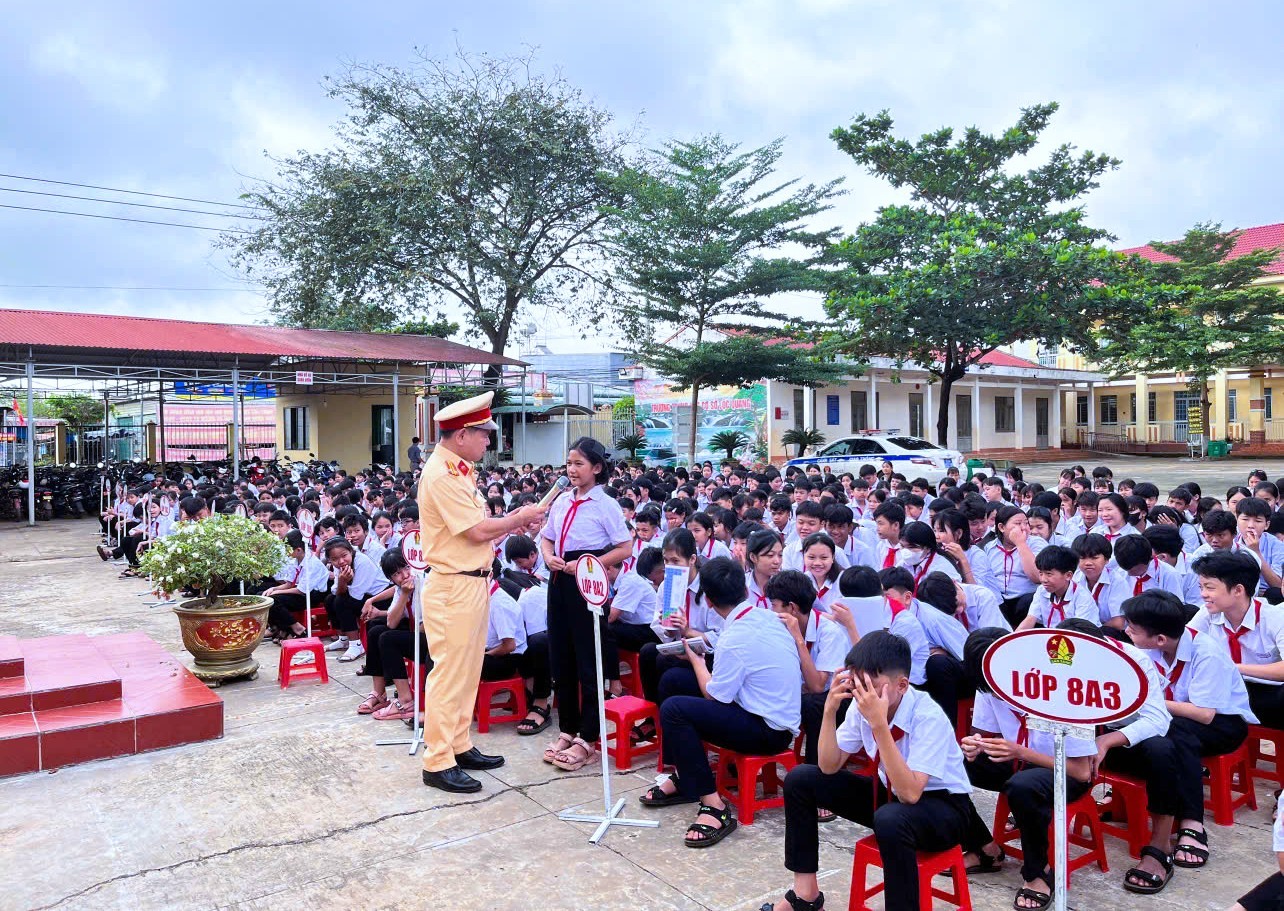 Tại Trường Trung học cơ sở và Trung học phổ thông (THCS và THPT) Đăng Hà, Trạm CSGT Đồng Phú phối hợp với nhà trường tổ chức buổi tuyên truyền cho 638 học sinh và 24 giáo viên. Nội dung tập trung hướng dẫn kỹ năng tham gia giao thông an toàn, phòng tránh tai nạn và chấp hành nghiêm quy định về đội mũ bảo hiểm. Đồng thời, trao tặng 5 mũ bảo hiểm cho học sinh có câu trả lời xuất sắc trong phần hỏi - đáp.