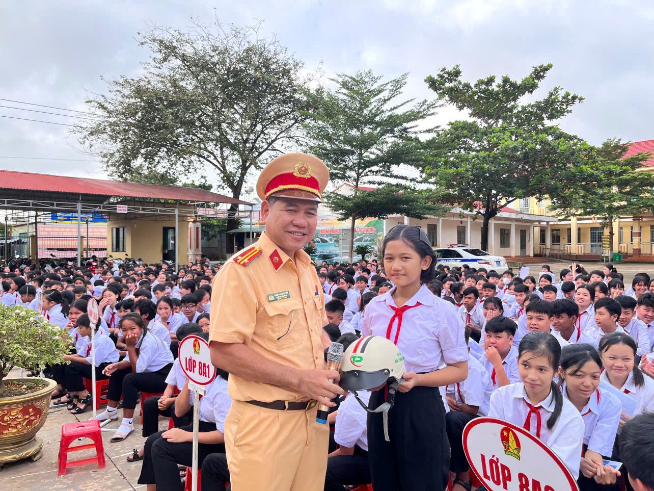Tuyên truyền ATGT, trao tặng mũ bảo hiểm và quà cho học sinh Trường THCS Lộc Quang