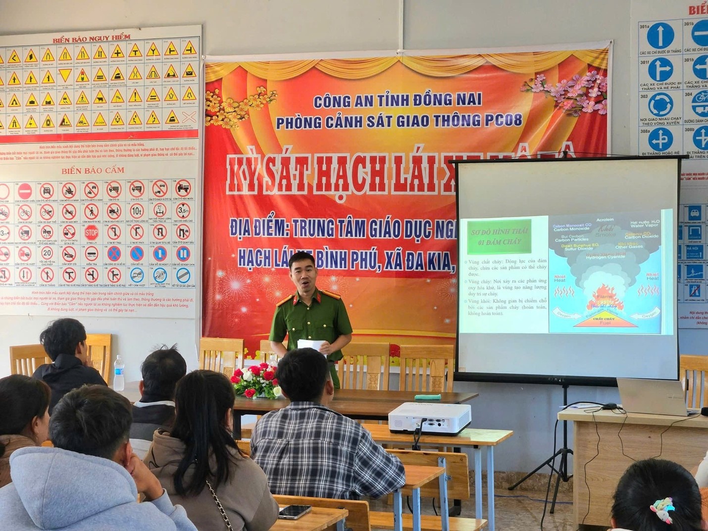 Tại buổi tuyên truyền, cán bộ Công an xã cung cấp các kiến thức cơ bản về nhận biết nguy cơ cháy nổ, kỹ năng xử lý tình huống khi xảy ra cháy, cách phân biệt và sử dụng bình chữa cháy đúng kỹ thuật, quy trình thoát nạn an toàn và các kỹ năng sơ cấp cứu ban đầu cho các học viên của Trung tâm. Nội dung được truyền đạt bằng nhiều hình thức trực quan, kết hợp hướng dẫn thực hành, giúp học viên - những người thường xuyên tham gia giao thông nâng cao ý thức, kỹ năng tự bảo vệ bản thân và hỗ trợ người khác khi gặp sự cố.